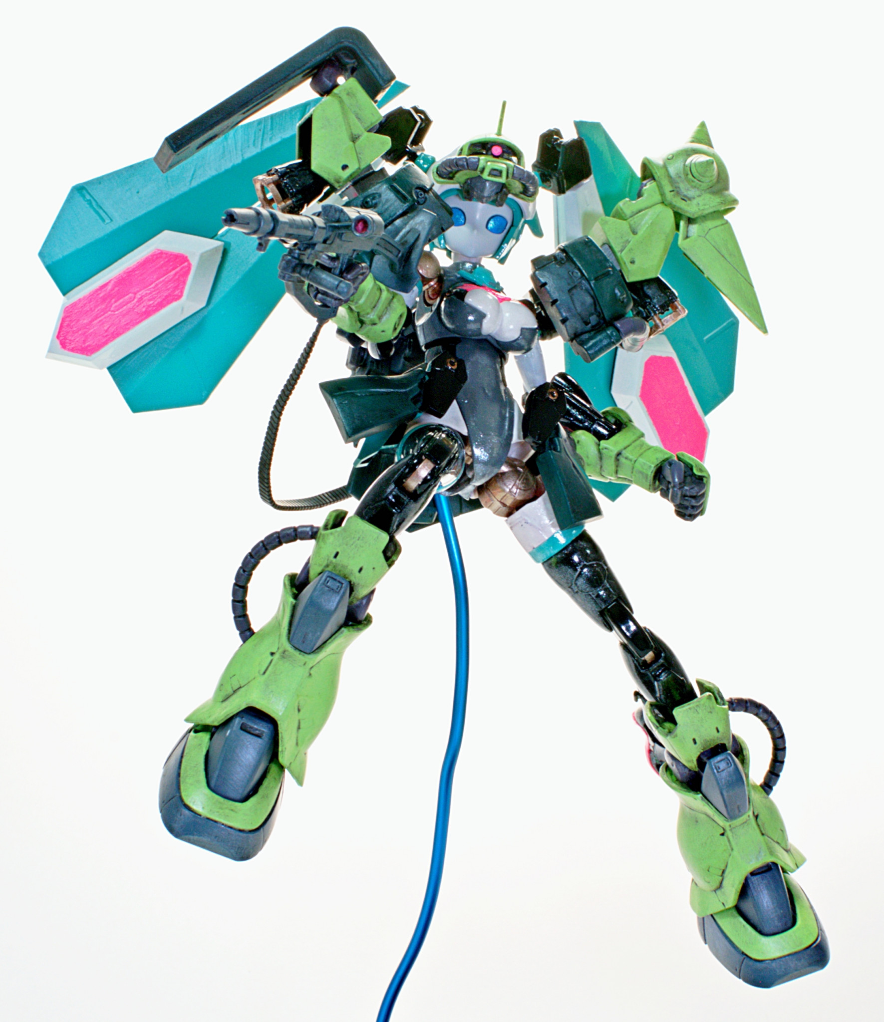 「ミクの日」と「ザクの日」を両立させるべく、「プラネッツシステムを搭載したミクのガンプラのようなナニか」に「プラネッツシステムを使用したザクのアーマー」を合体させたのがこの作品になります!