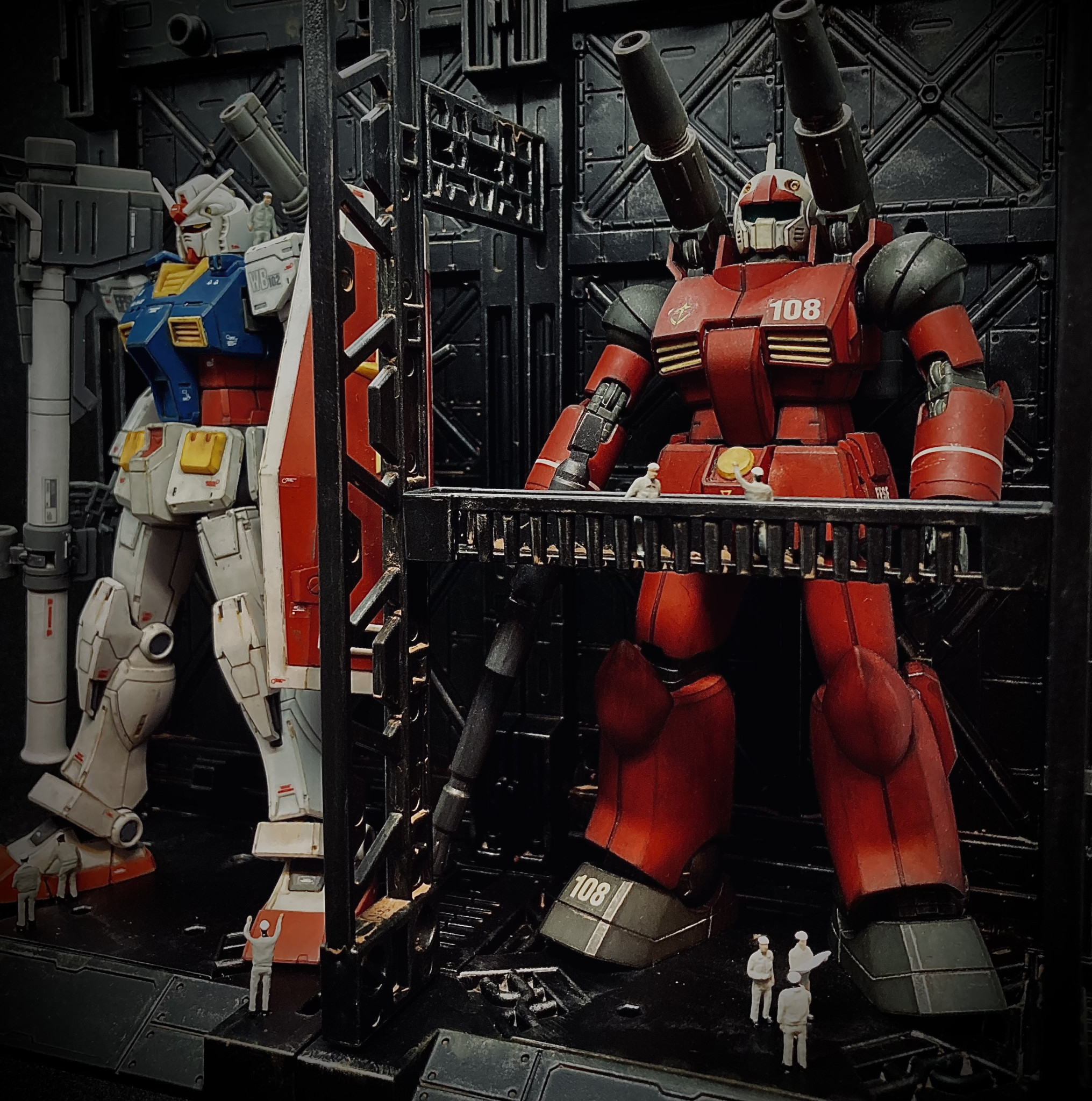 この基地ジオラマいいですねー、塗装や小物置いたりと色々手を加えていこうと思ってます(gandam-hand1)