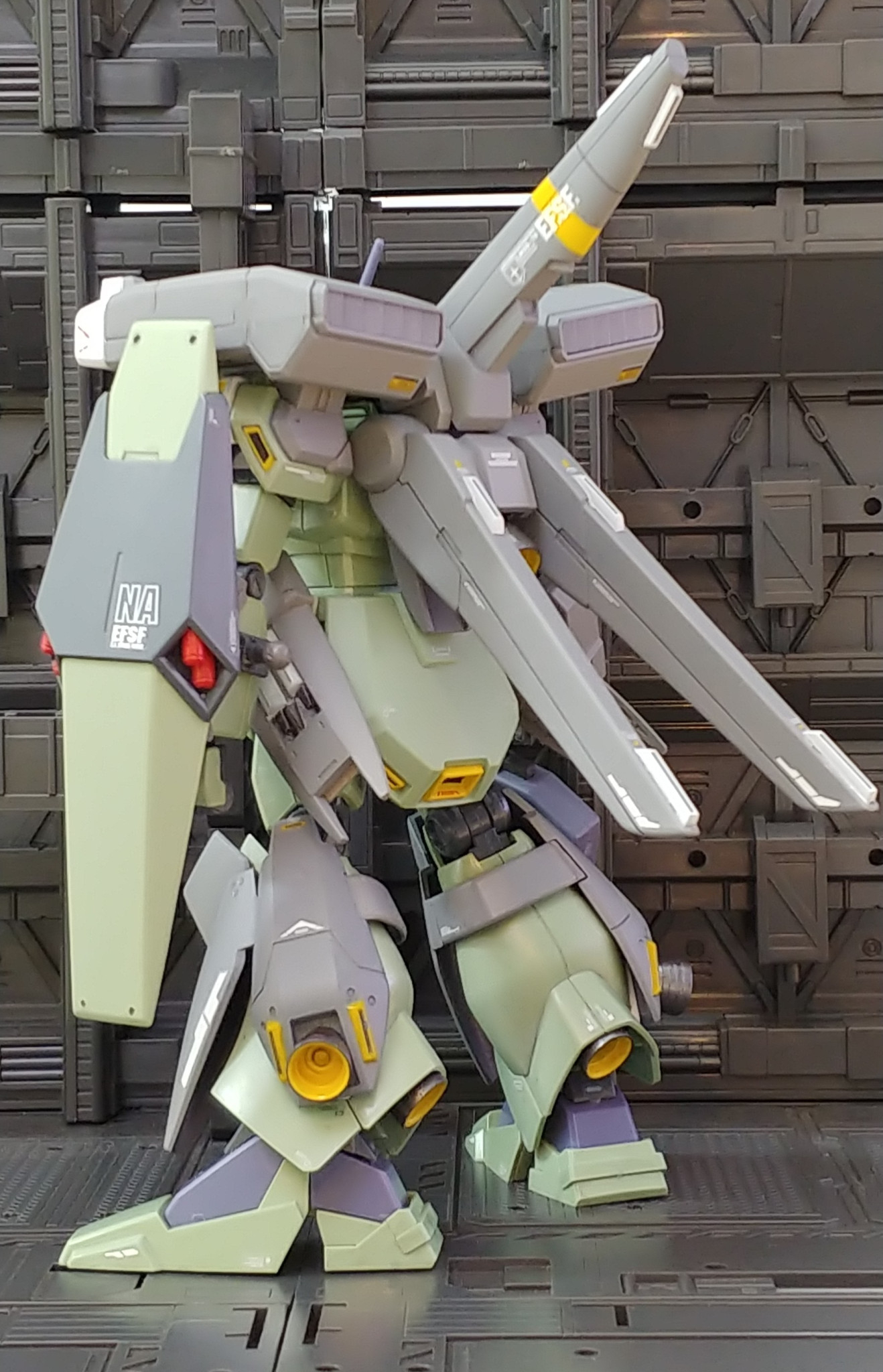 色んなMSのデザインのミックスという感じっす。スタビライザーはZプラス、リアアーマーなどはネロにとても似てて、足首のスリッパはフルバーニアンっぽいですね。