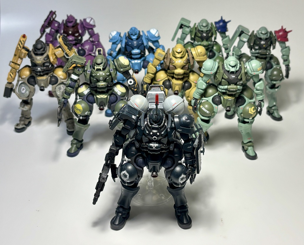 オリジナル機も交えての、我が家のGQザク/軍警ザク軍団。計14機となりました。