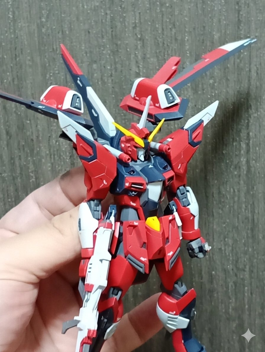 HGCEのイモータルジャスティスを、某模型店のコンペ用に製作しましたほぼ固定モデルで、ちょっとクセの強い感じになりましたが完成しました
