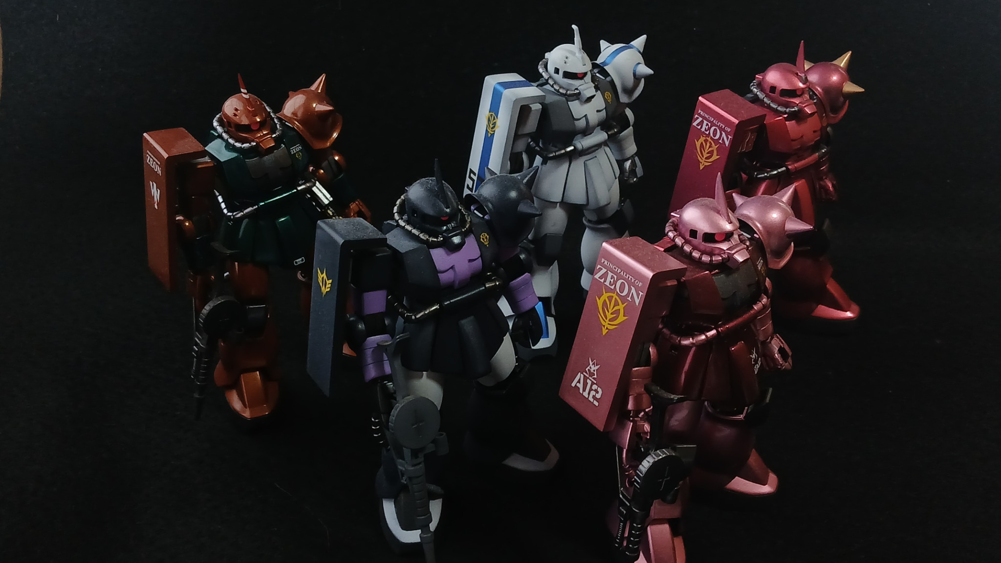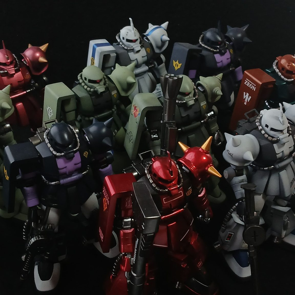 ファーストガンダム、特にザクシリーズが好きで、製作の大半はザクという偏った出戻り中年モデラーになります。ここ数年はパール・メタリック塗装を多く行っています。