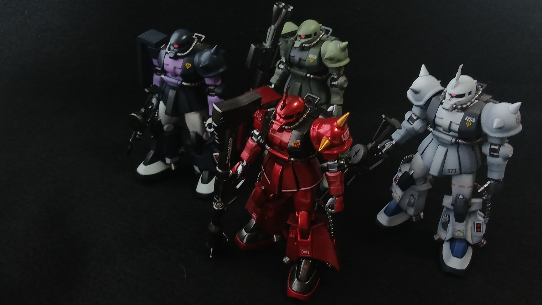 なのでぱっと見の印象は同じザクシリーズを回収した機体群として違和感ないのでは?と自己満足しています。