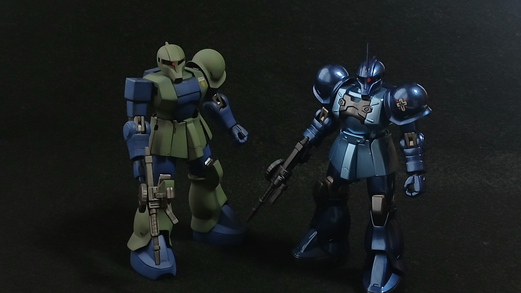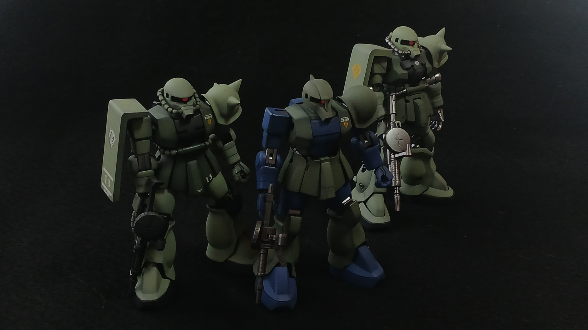 06DはHGUC040のザクⅡをベースに旧キットMSVの06Dのパーツスワップで製作しました。ハーフキャノンは同じくHGUC040のザクⅡをベースにオリジン版ザクキャノンのバックパックを移植するという簡易改造版!