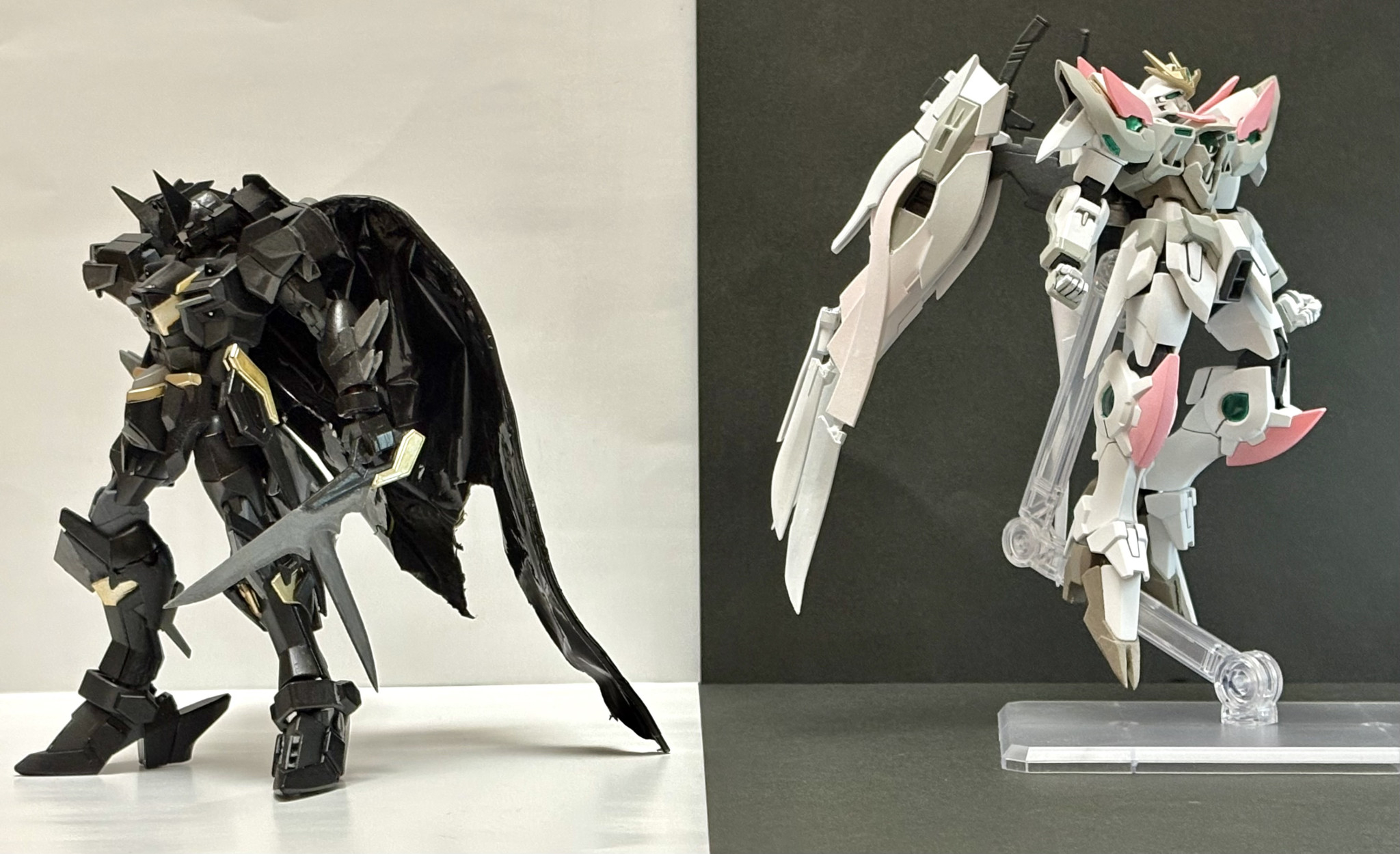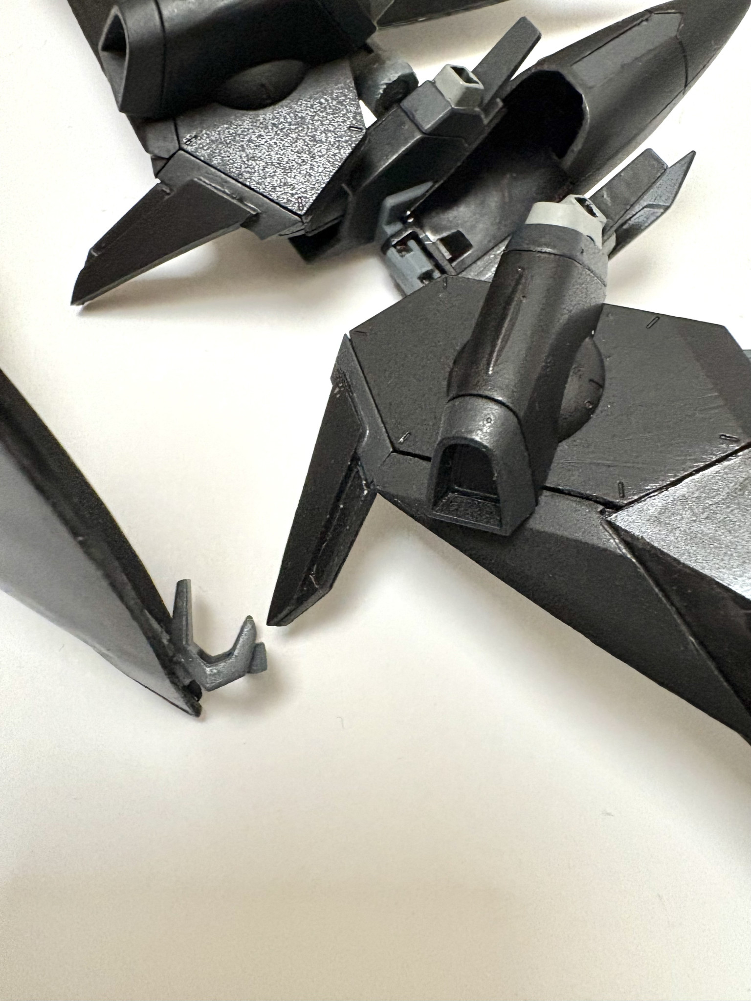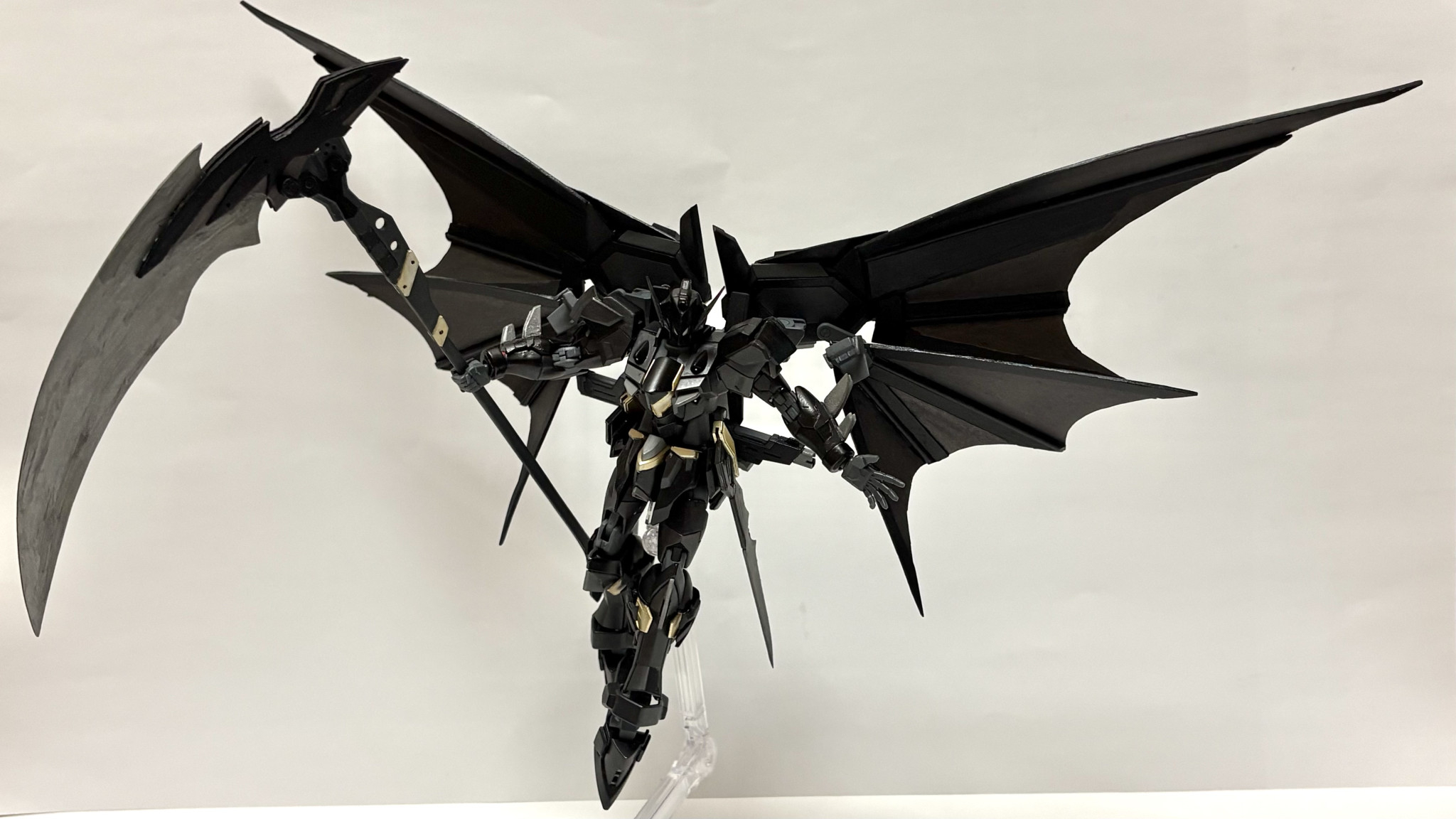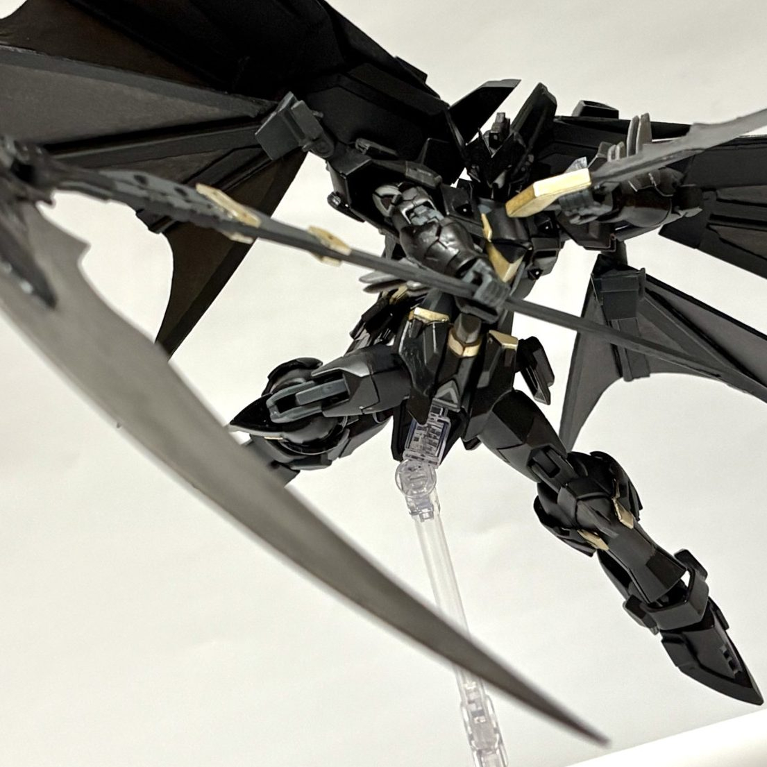 本体改造したときに余ったリフターをなんとか使いたいと思った末に、デスサイズみたいなメカコウモリウイング欲しいと思ったので作りました。飛膜はプラ板でスクラッチし、あとは細かい部分をいじってそれっぽい形にしています。ジャスティスらしさはしっかりどっかに棄てられたと思います。