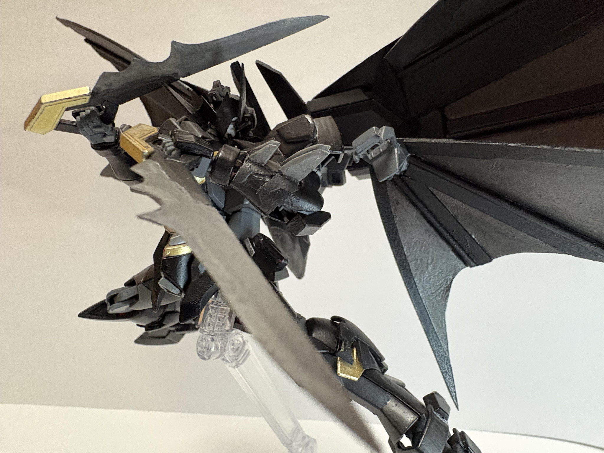 下の翼は取り外して持てます。マントを掴んで翻すアクションのイメージです。リボルテックのヤマグチ版バットマンのやつを参考にしてます。