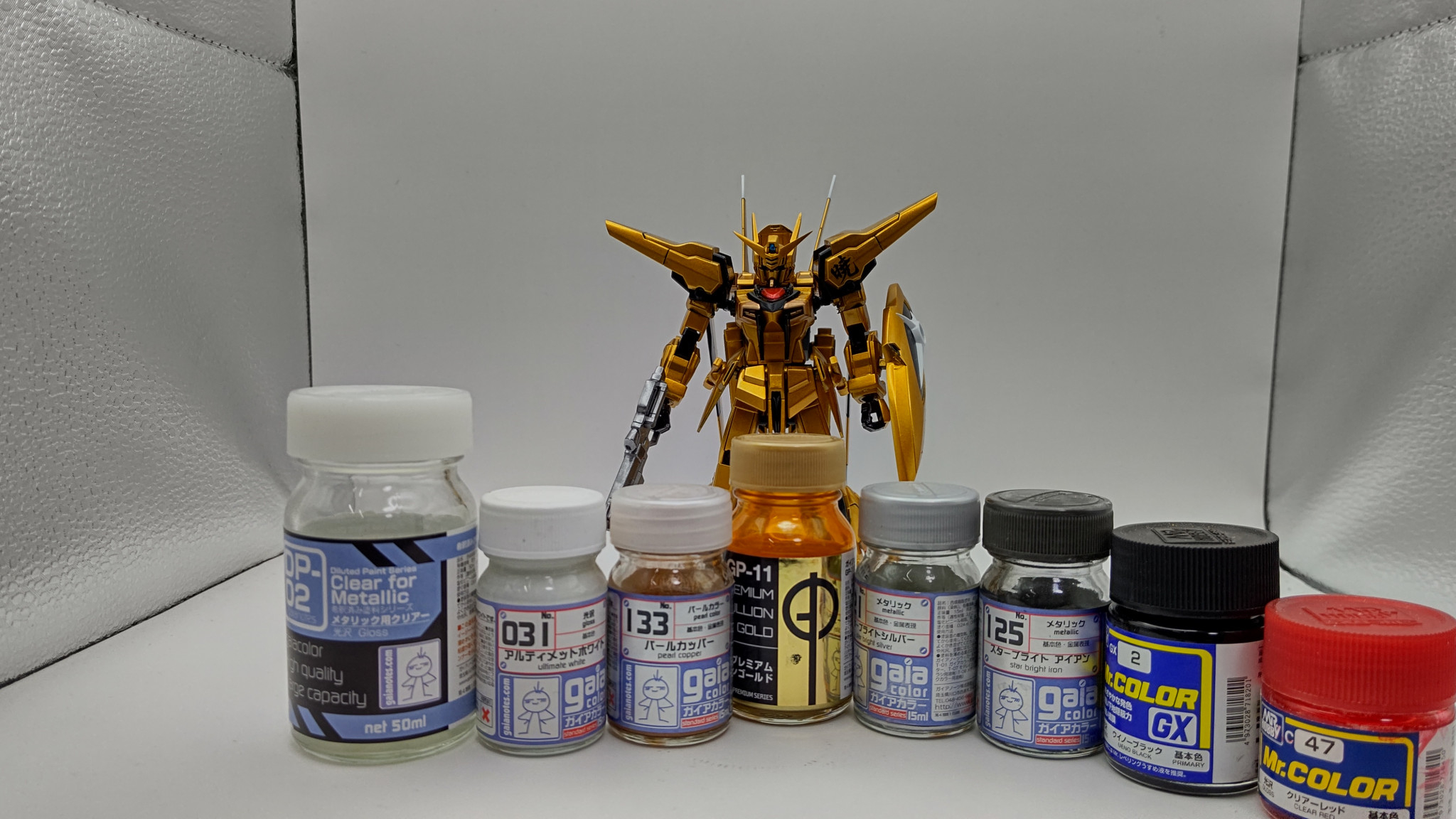 今回は気になっていた塗料プレミアムブリオンゴールドを使ってみたかったのでアカツキに使用してみました