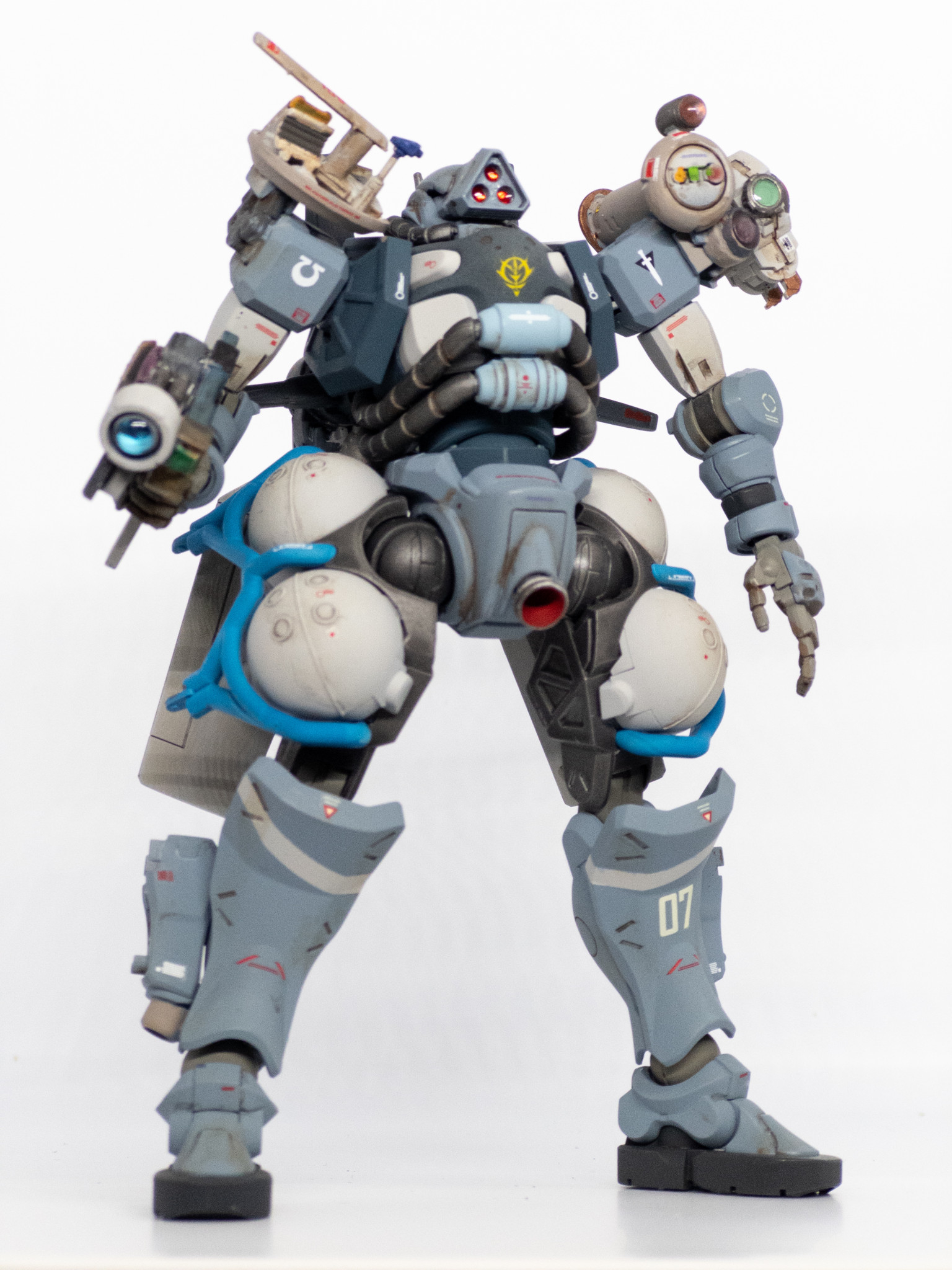 肩のセンサー類やガンカメラもジャンクパーツをゴテ盛り。