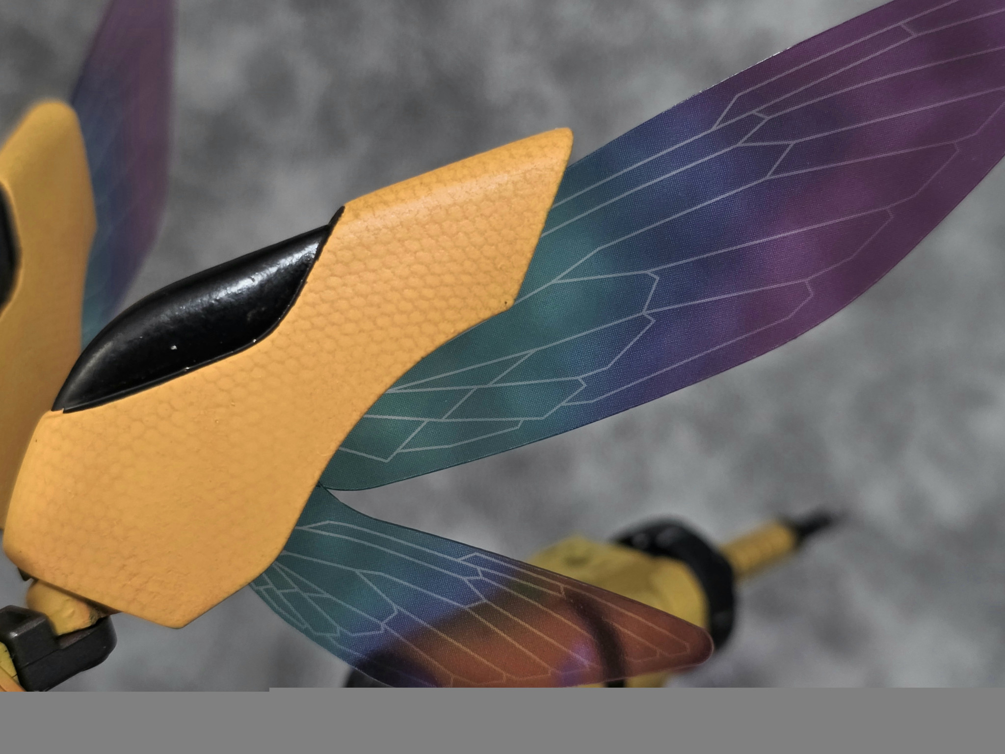 今回試してみたのが、この翅の装甲部のあみあみのパターンです。色味が近すぎて近づかないと全然わかりません(笑)