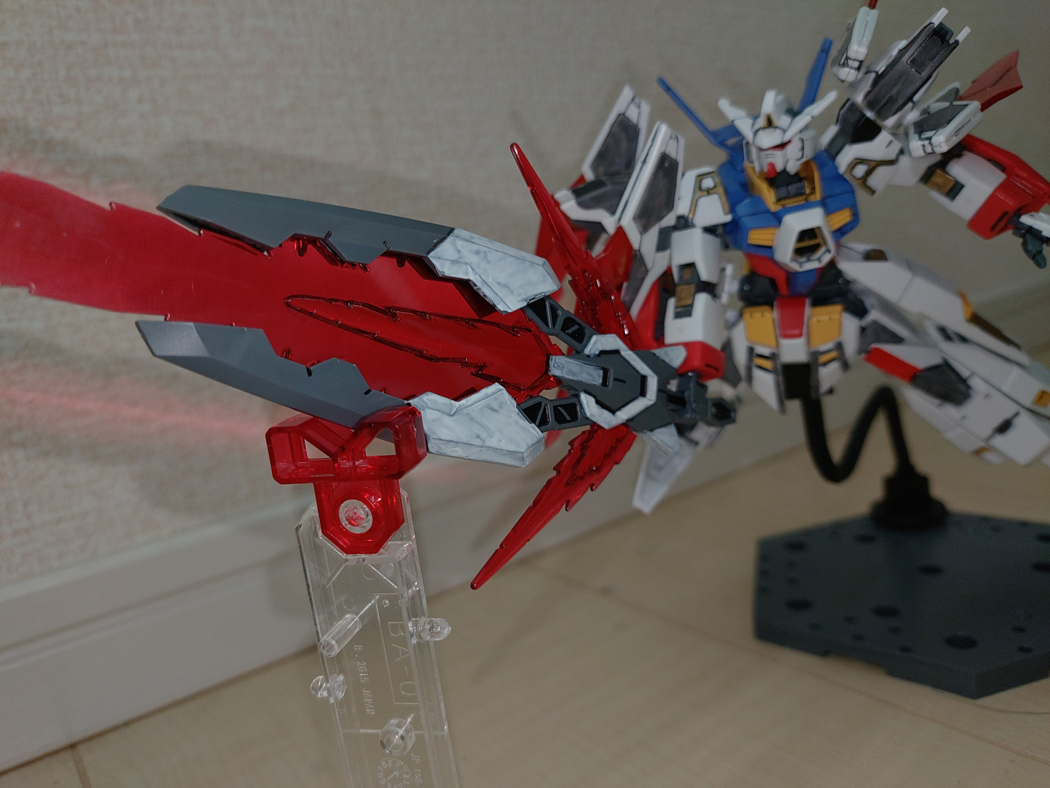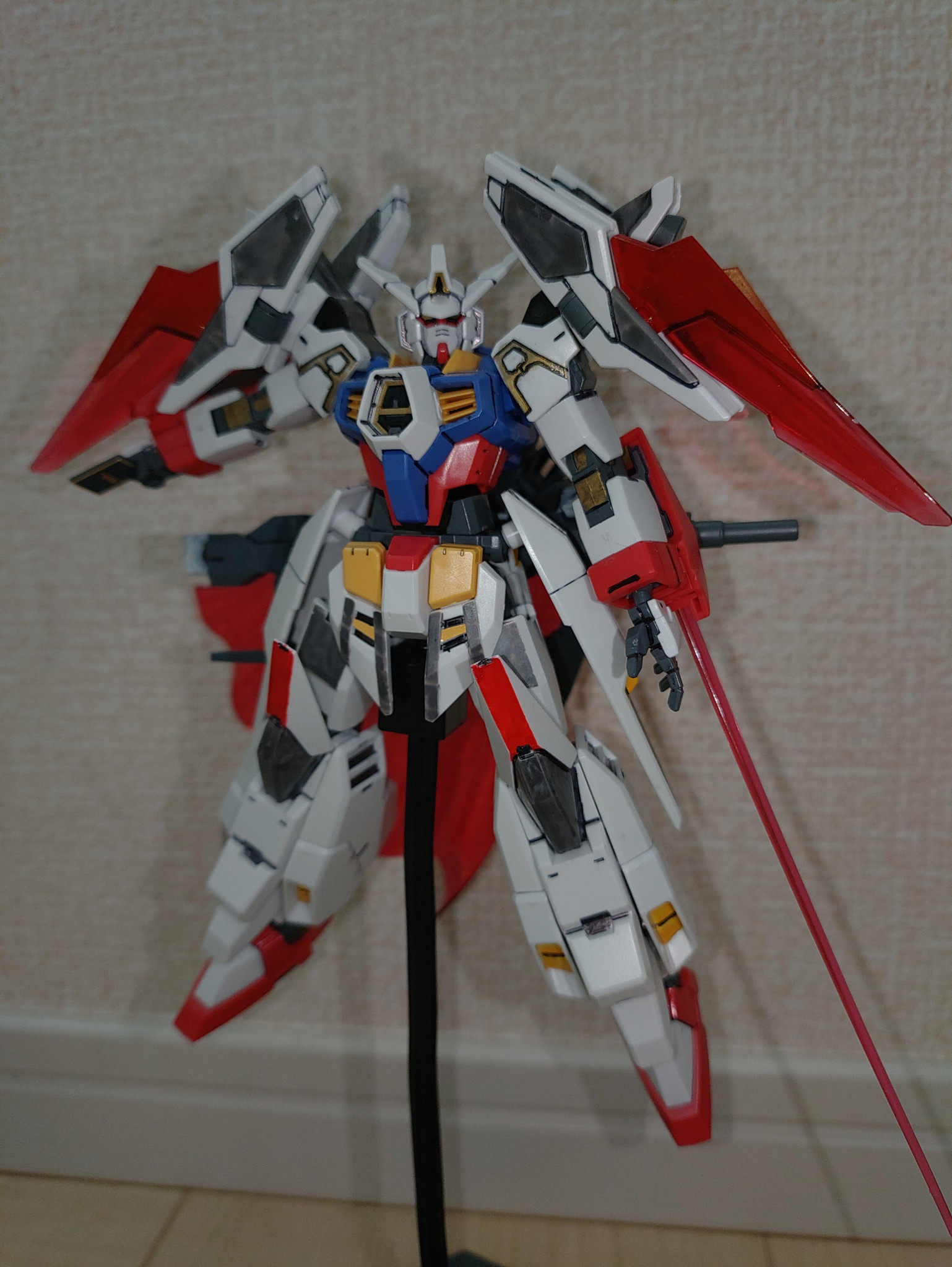 後ろから寄るとこんなかんじ。サイドアーマーやバーニア、見づらいですが足裏も塗装してあります。