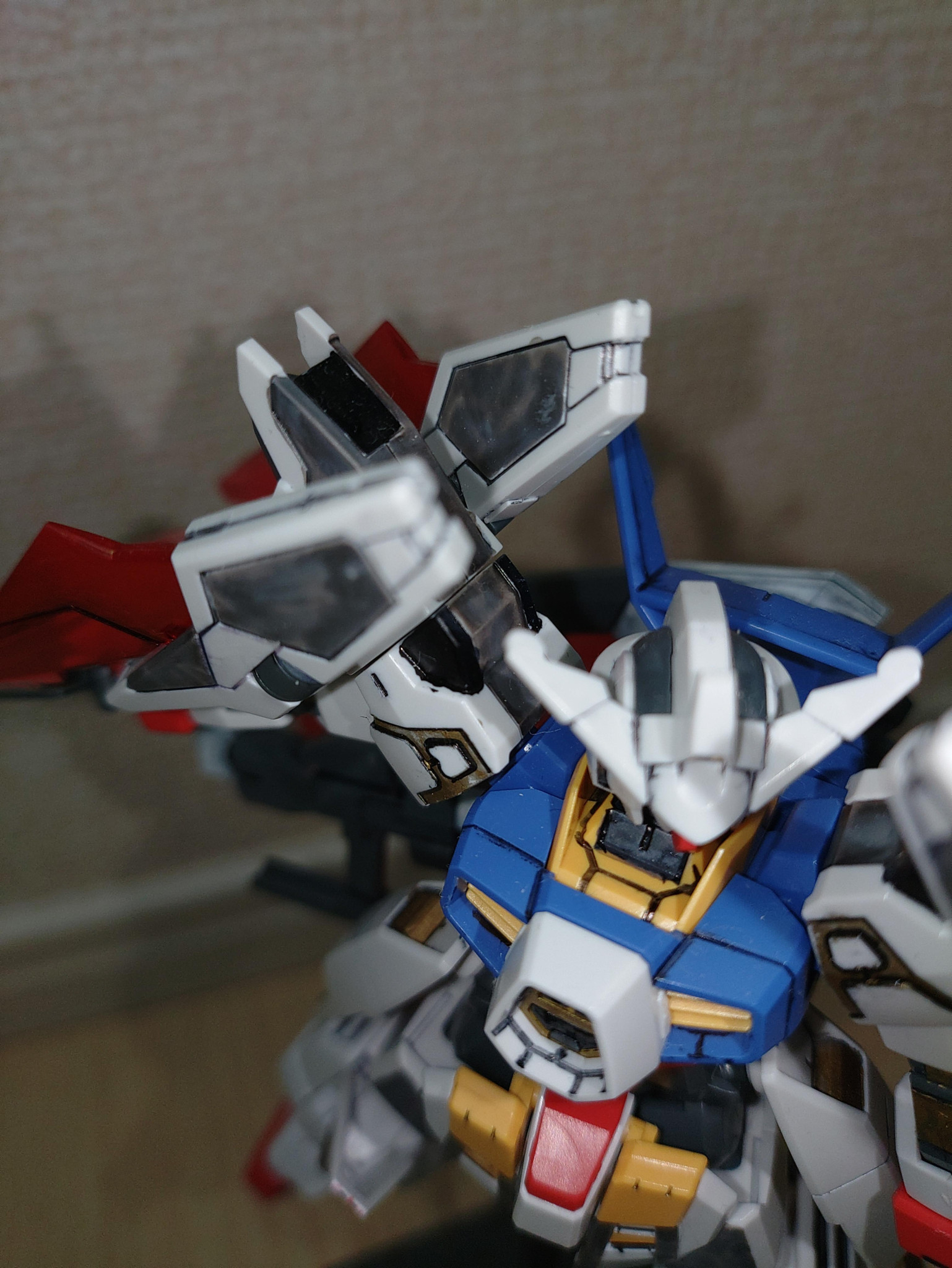 中古で買ったトライエイジガンダムを、ガンダムマーカーで部分塗装しました。トップコートなどは吹けませんでしたが、個人的にかなり良くできたので投稿させていただきます。