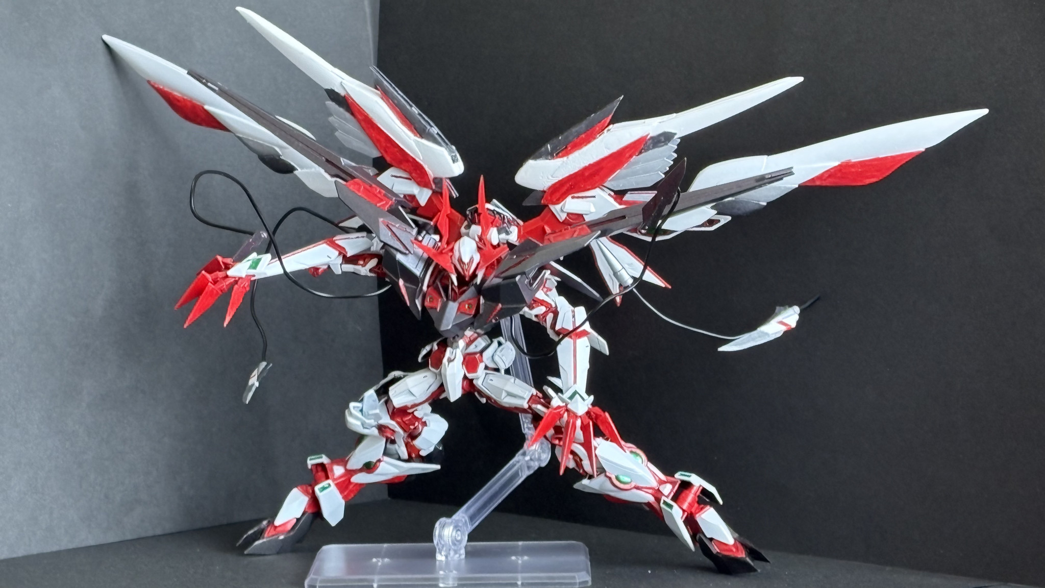 羽全展開&ワイヤークロー全展開。書いてる最中でももうオキシトシンとアドレナリンが湧き出てきます。いい加減まともな背景紙を買え私。どうしよう。せっかく敢えてつけなかったヘイロゥを付けたくなってきましたね。でも悪魔なのでやっぱりダメです。