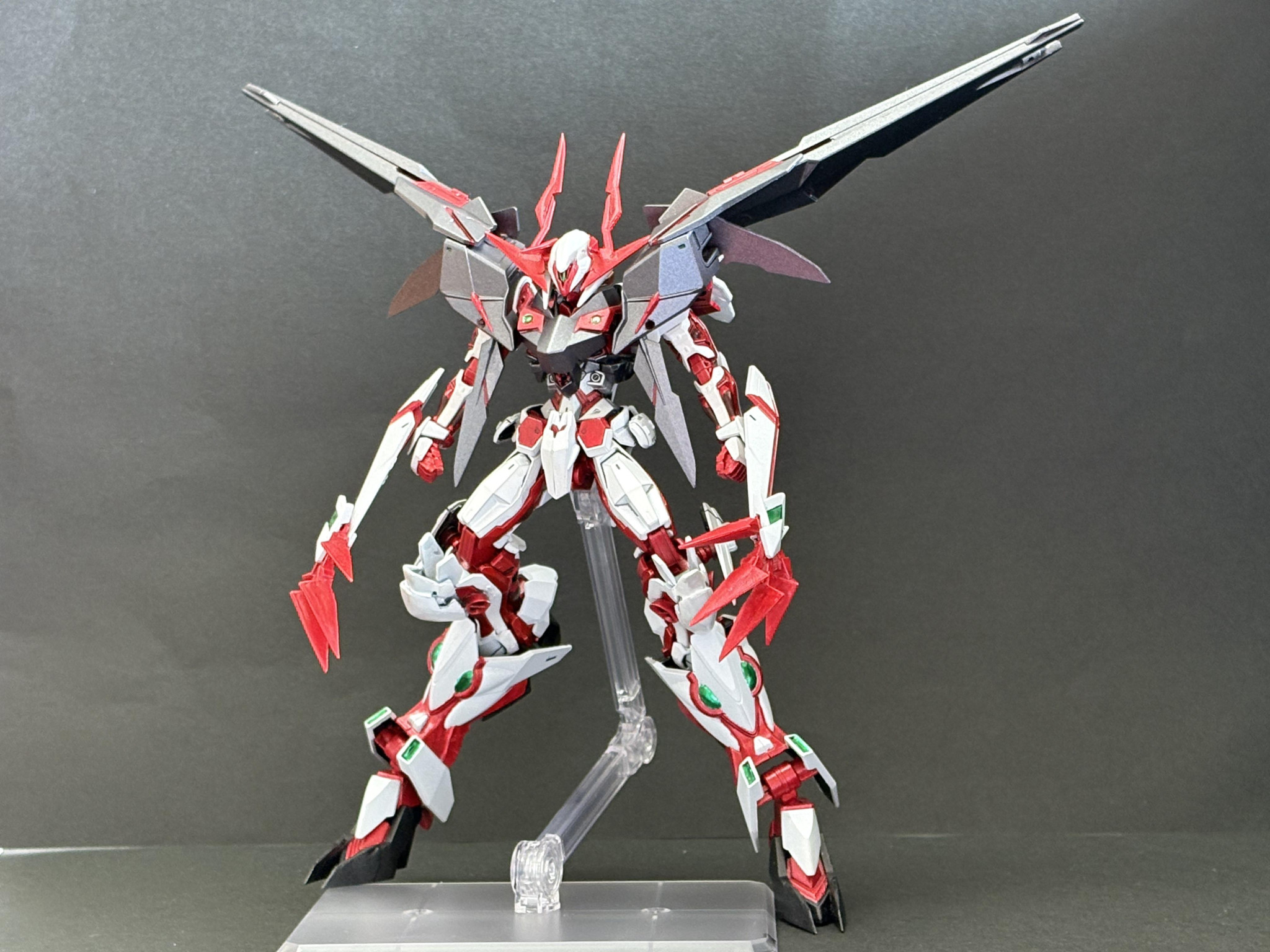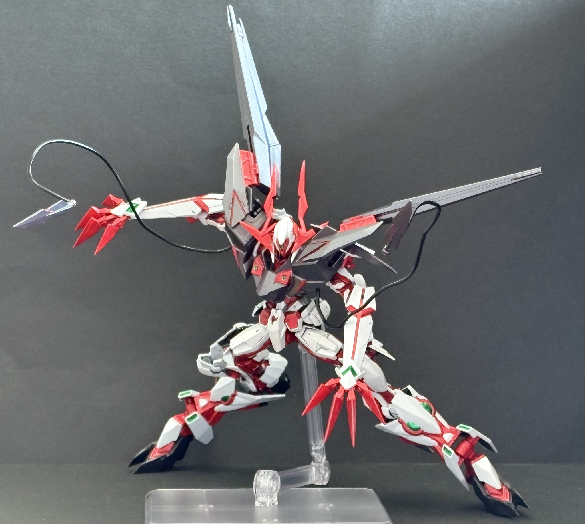 長い手足に長いバインダーがあることで初めてバランスが取れる気がします。ワイヤークローは太めのリード線に交換して固くしています。デカイ長いでポージングが取りづらい…………。