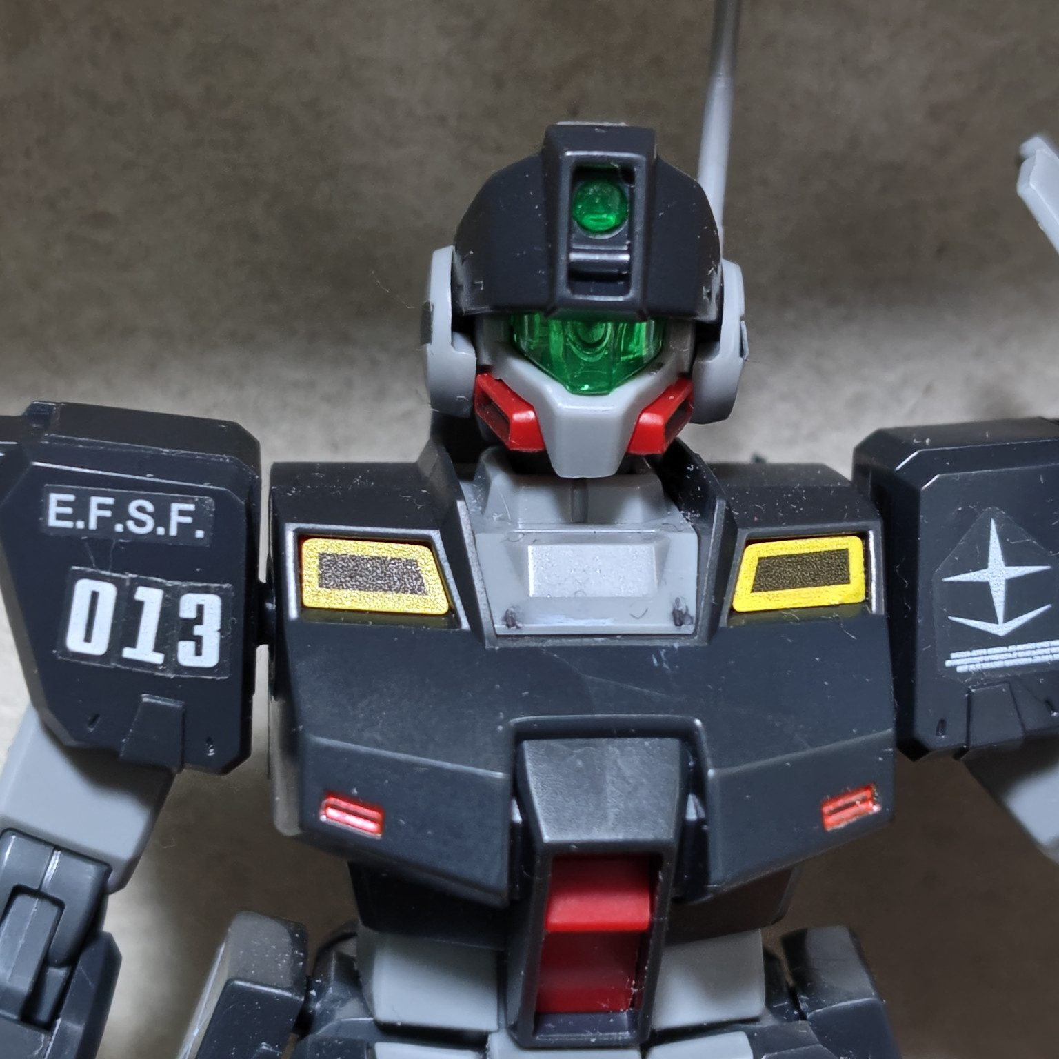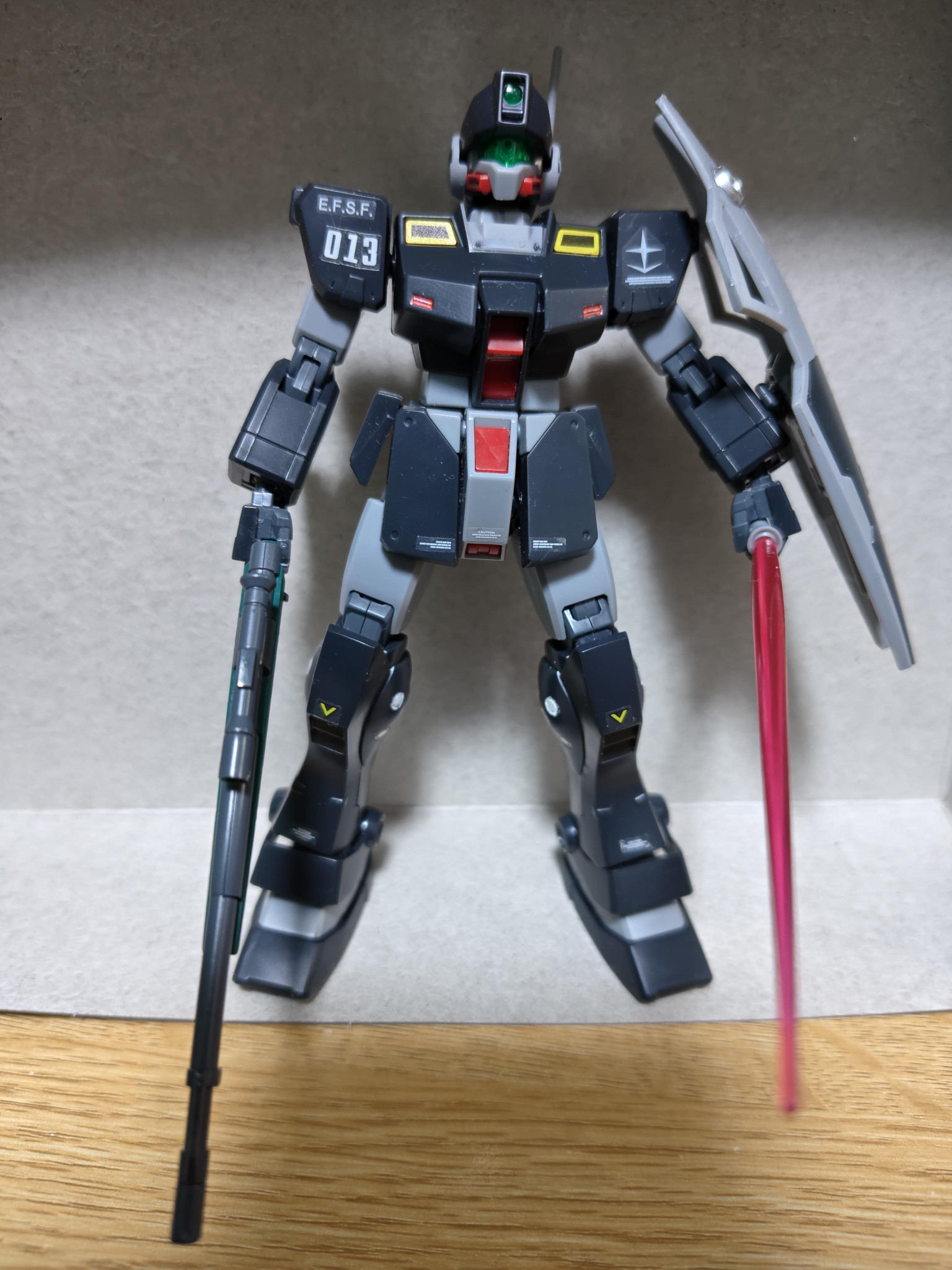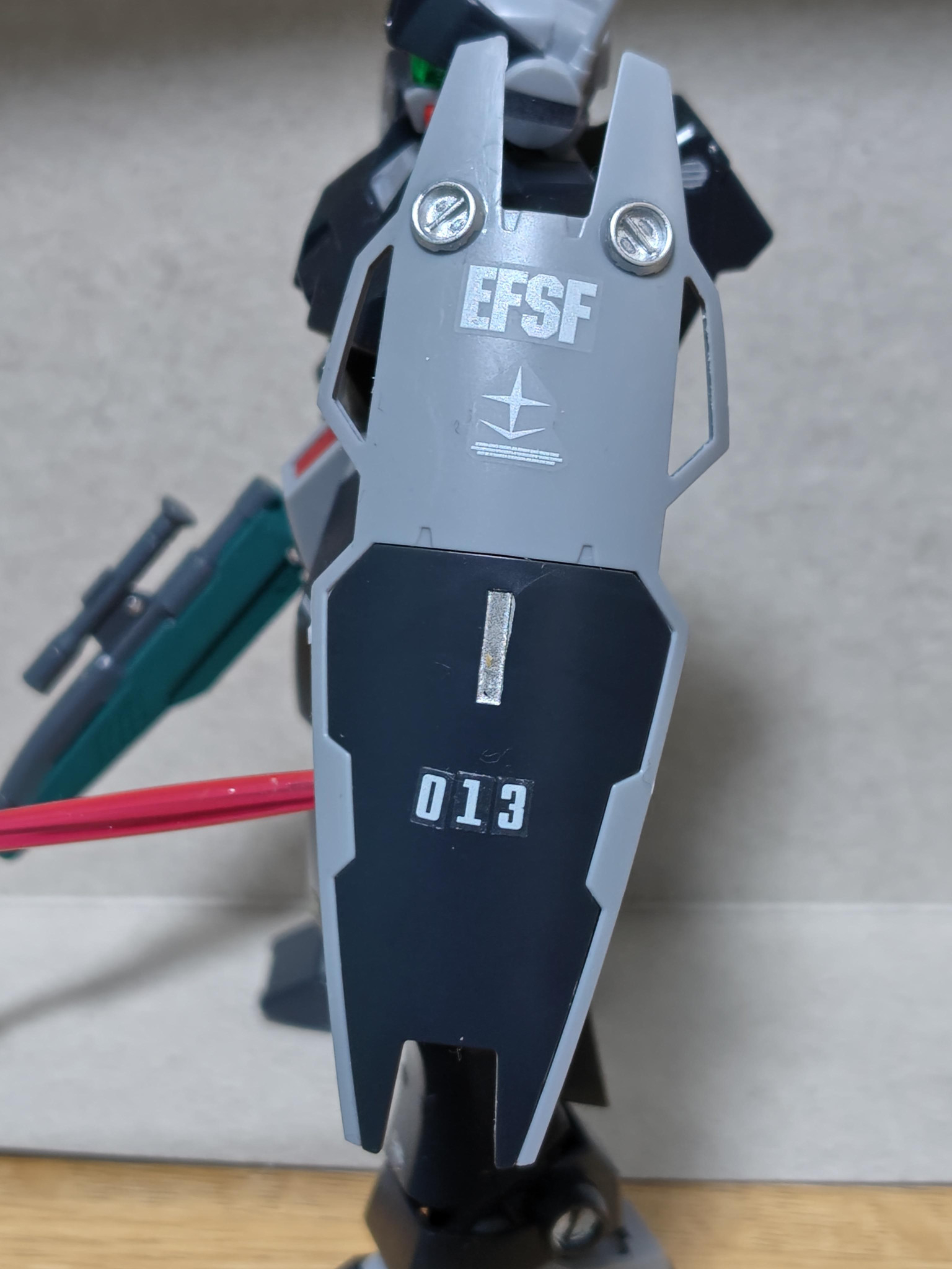 胸とシールドに軍警ザクの余っていたナンバーシールで013を貼り付け。