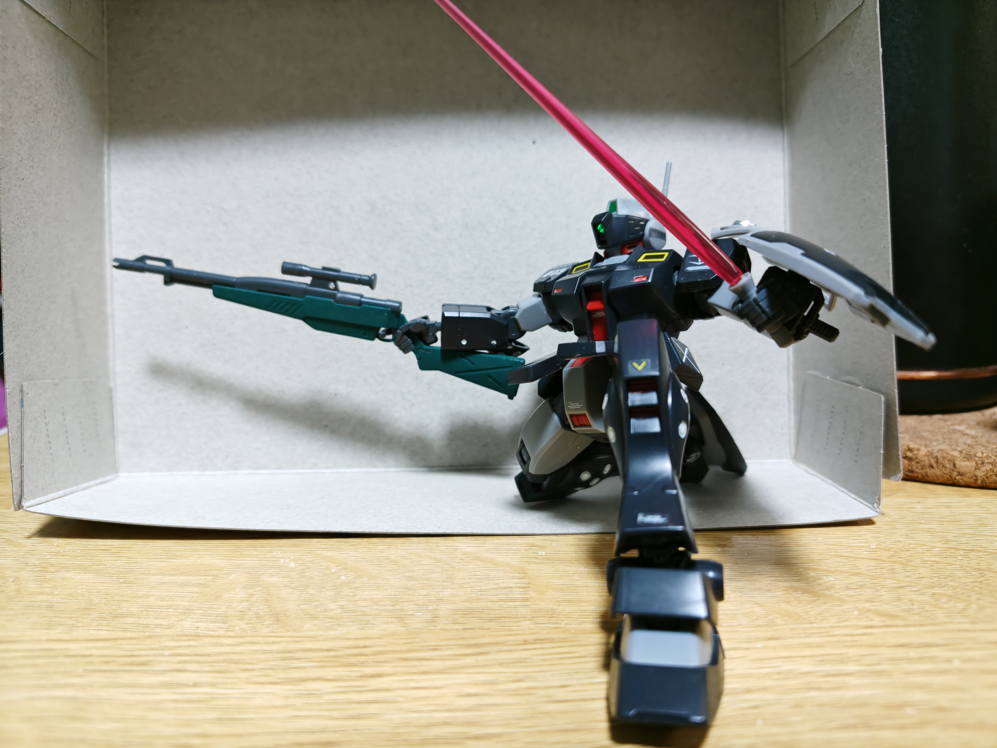 アクリルガッシュで調色してスナイパーライフルを塗り塗り。ちょっと変わった緑色になりましたが、中々よい感じ。