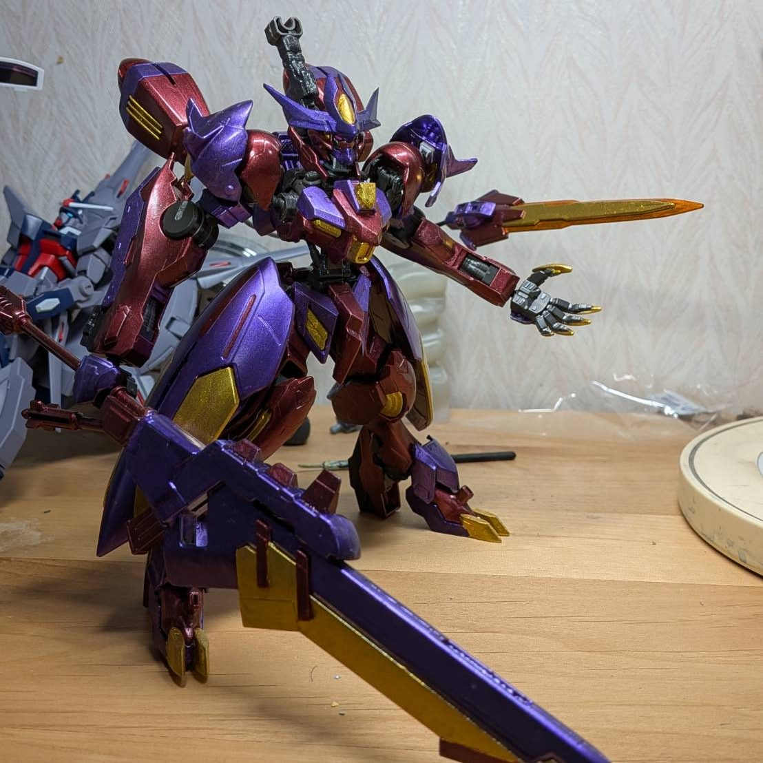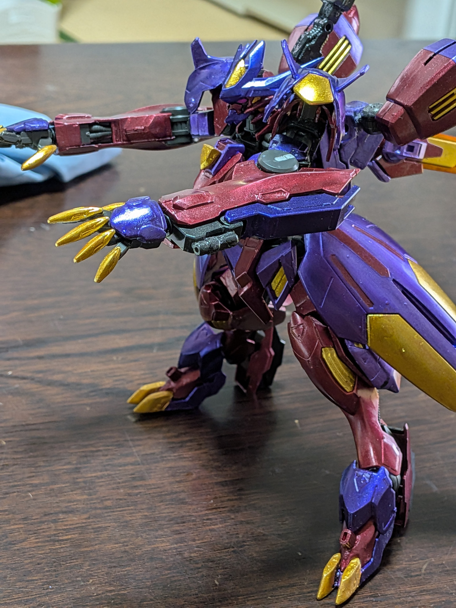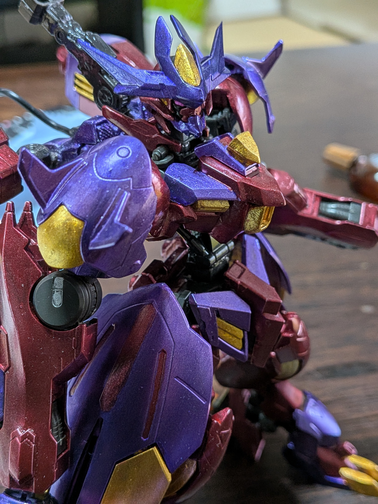主に使用した塗料はクレオスのメタルブラッディレッド、メタルバイオレット、ラフゴールド、です。