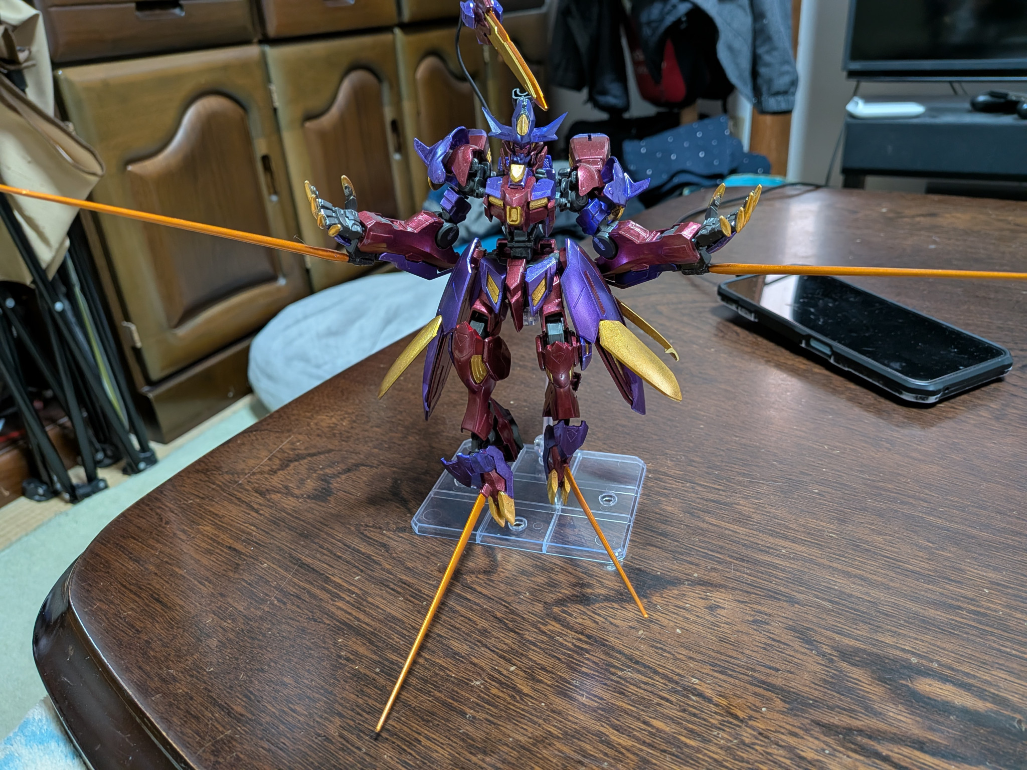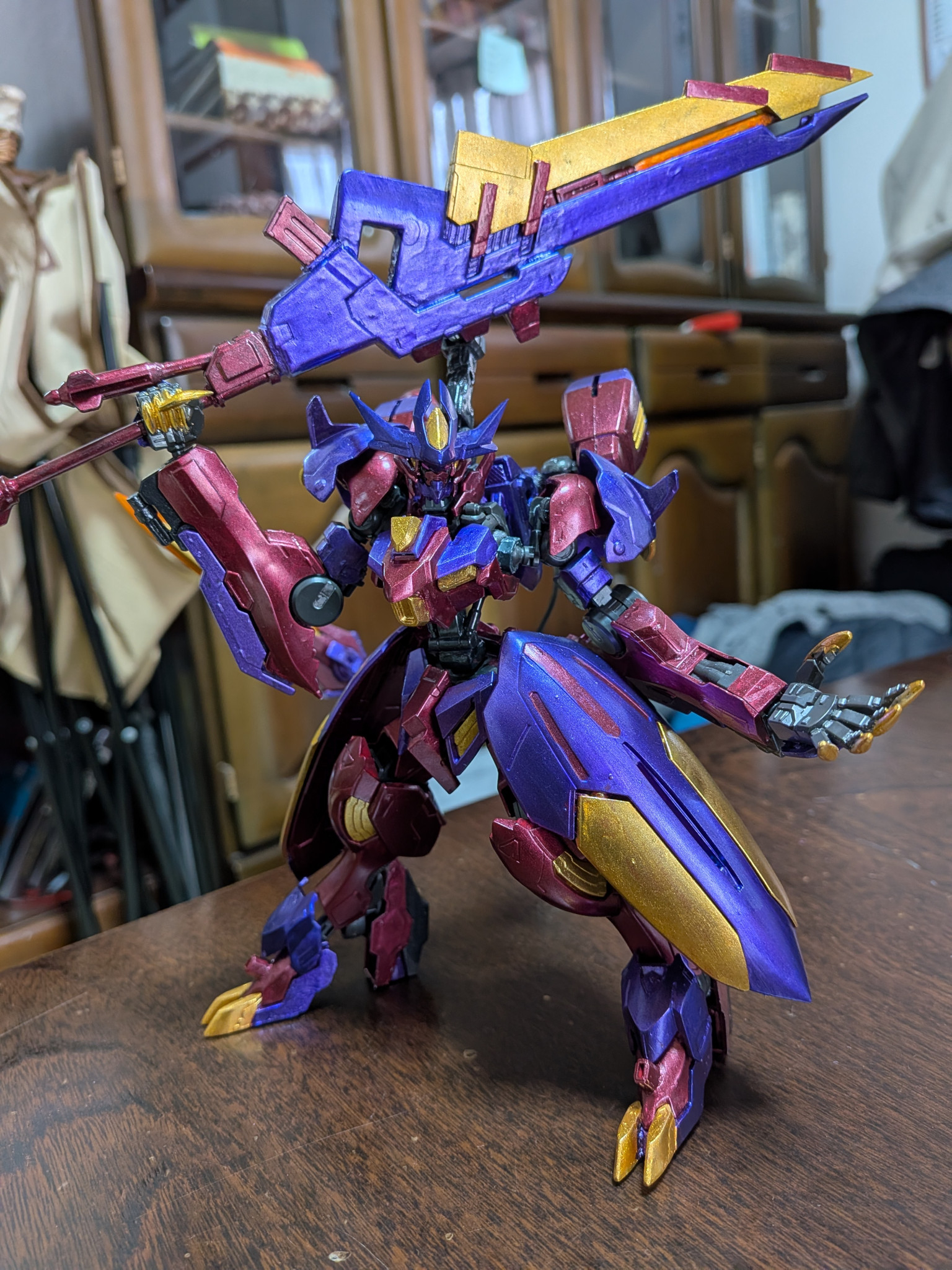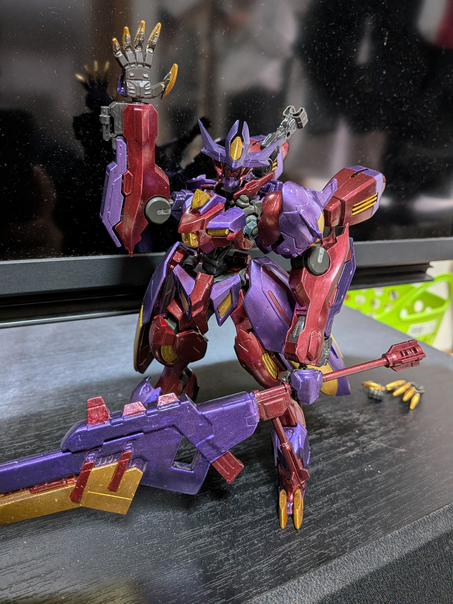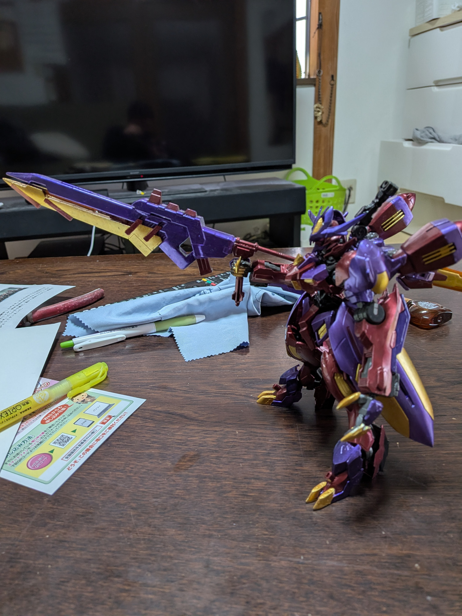 主に使用した塗料はクレオスのメタルブラッディレッド、メタルバイオレット、ラフゴールド、です。