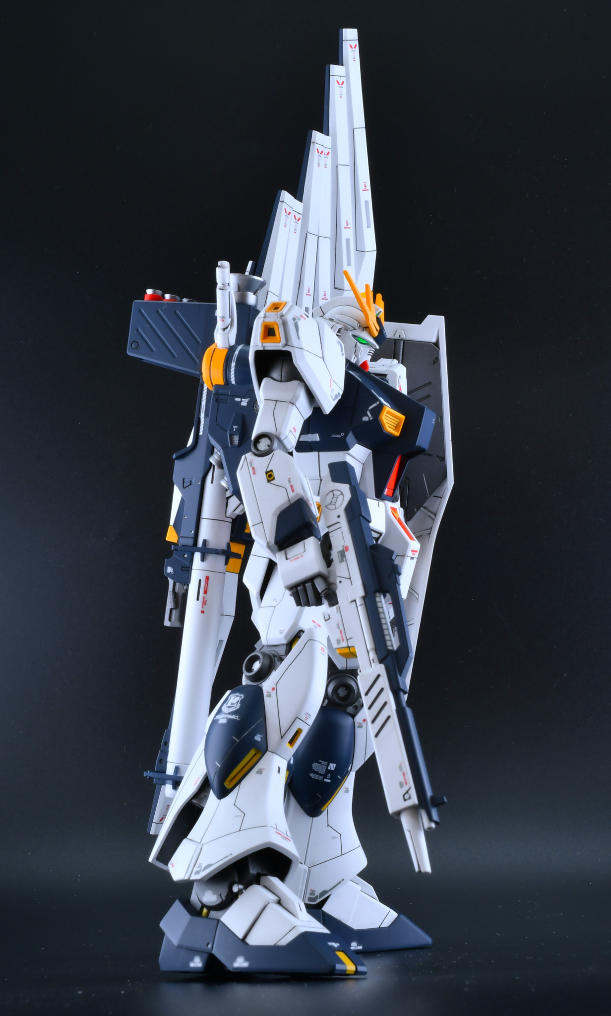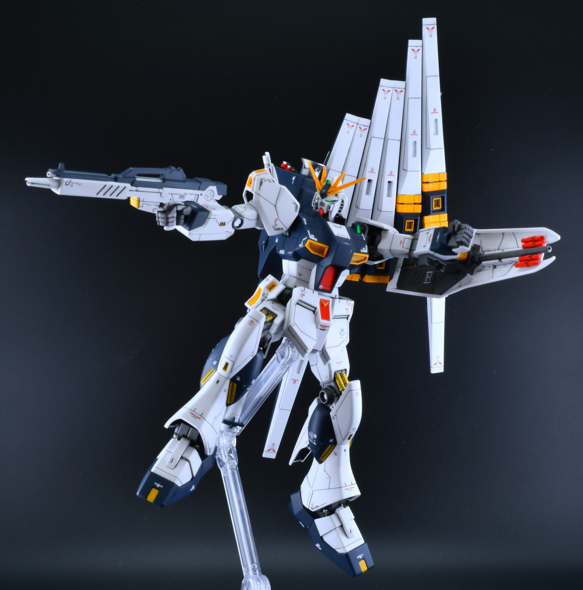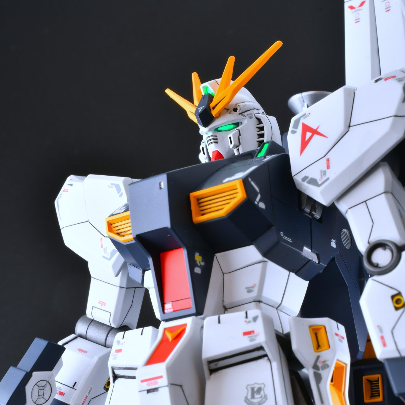 良い感じに追加されたスジボリと丁寧な塗装でとても綺麗なνガンダムですね!