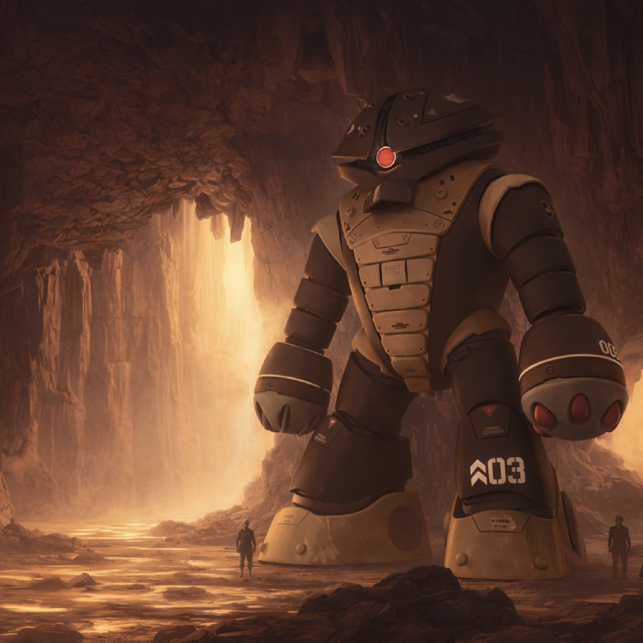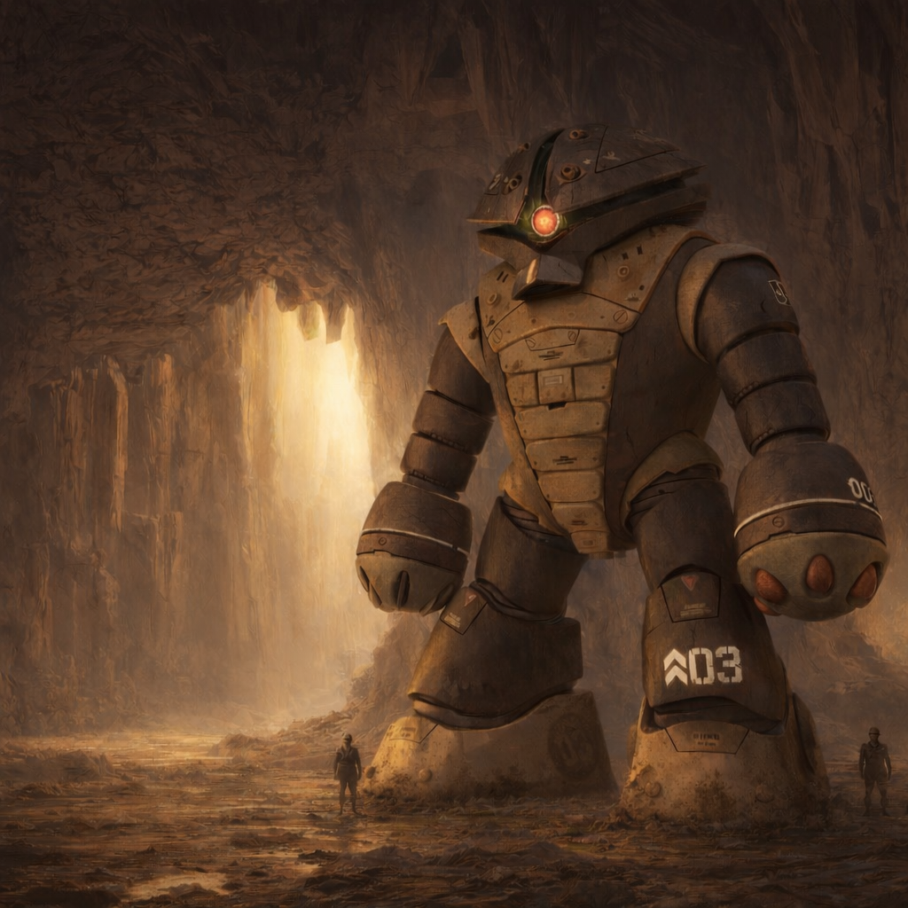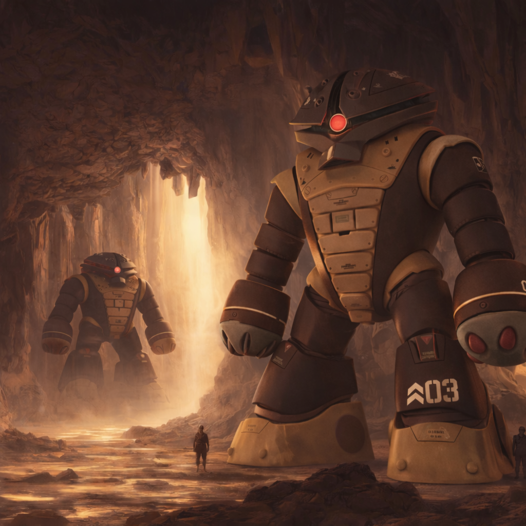 以前投稿したHGUCアッガイをAI画像生成でジャブローの洞窟内に潜入した場面を再現してみました。