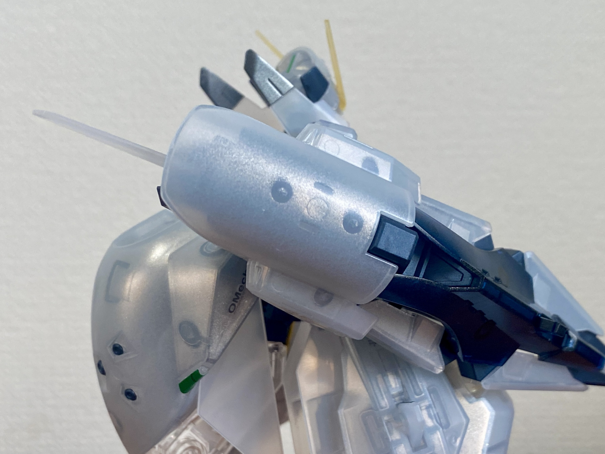 クリアパーツへの本格的な塗装は、今回が初挑戦です。これまではセンサーアイなど小さなパーツにとどまっていましたが、今作ではもう一歩踏み込んでみました。