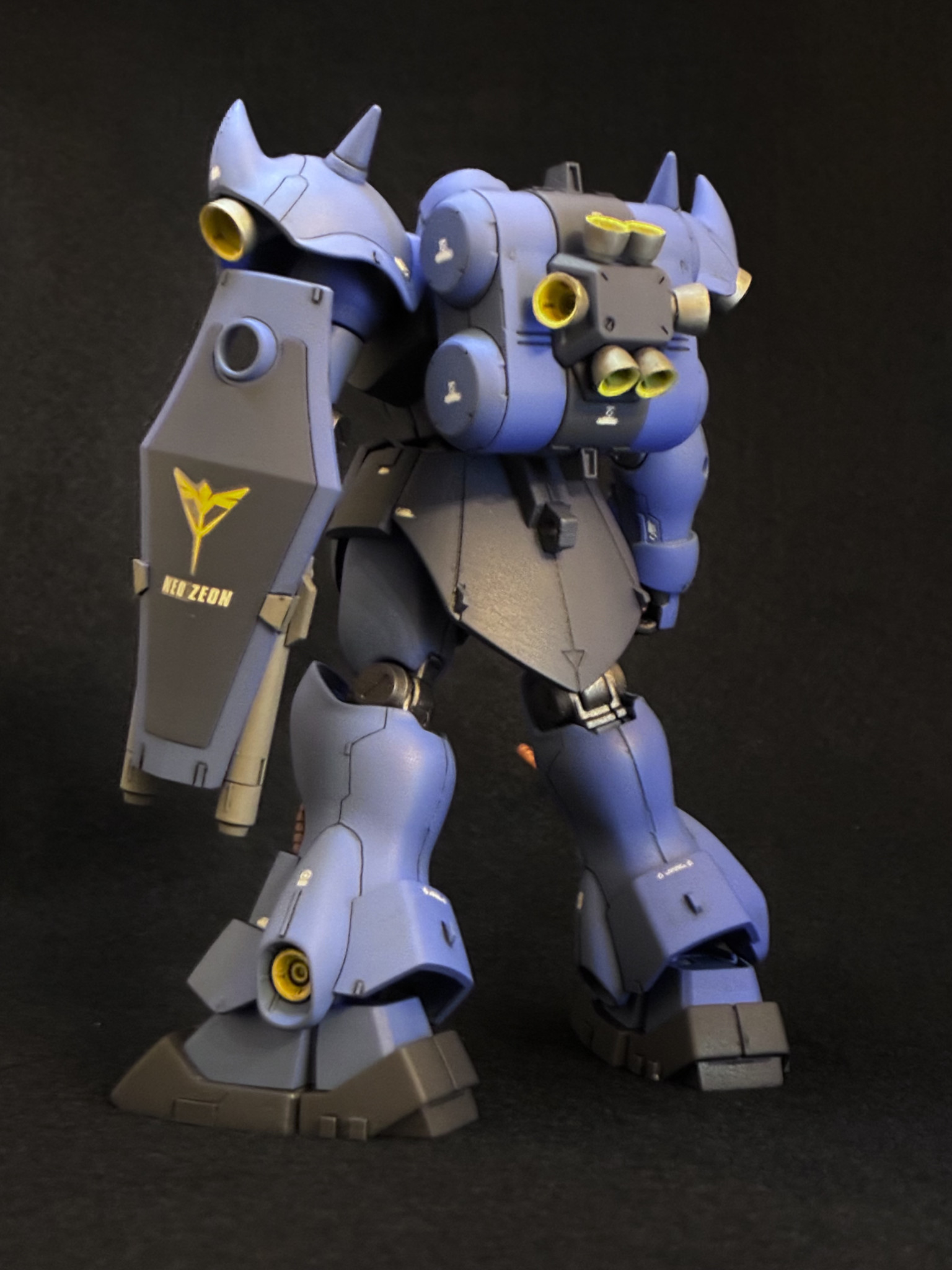 オマージュ元の作例では陸戦用MSということでバックパックを装備していませんでしたが、私の脳内設定ではアクシズ落としのために宇宙から引き上げられた機体であるので、ギラ・ドーガ用のバックパックを装備したものとしています。
