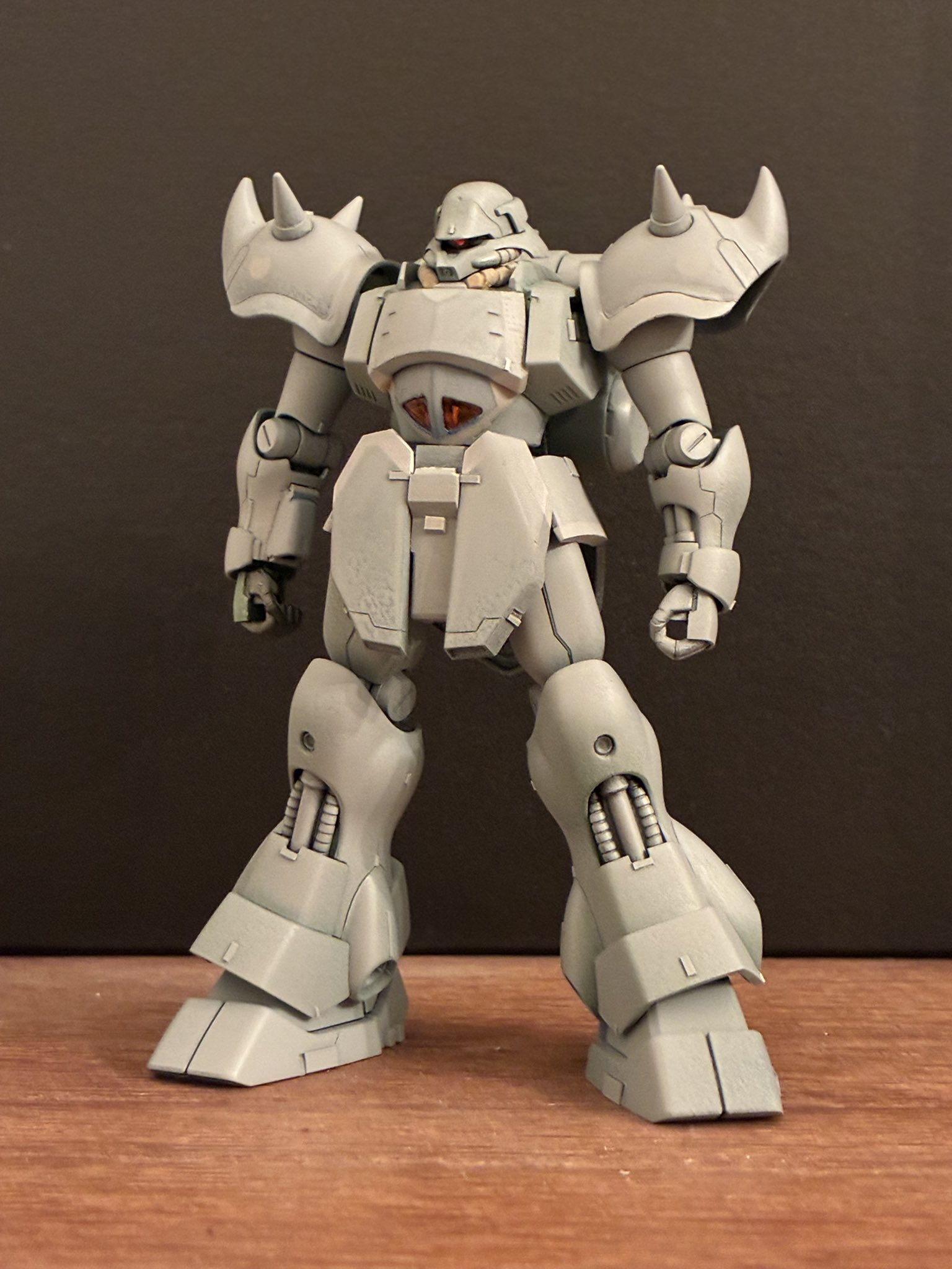 ギラ・ドーガにグフのパーツを組み込む形で製作しました。ギラ・ドーガ自体も若干のプロポーション改修を行なっています。