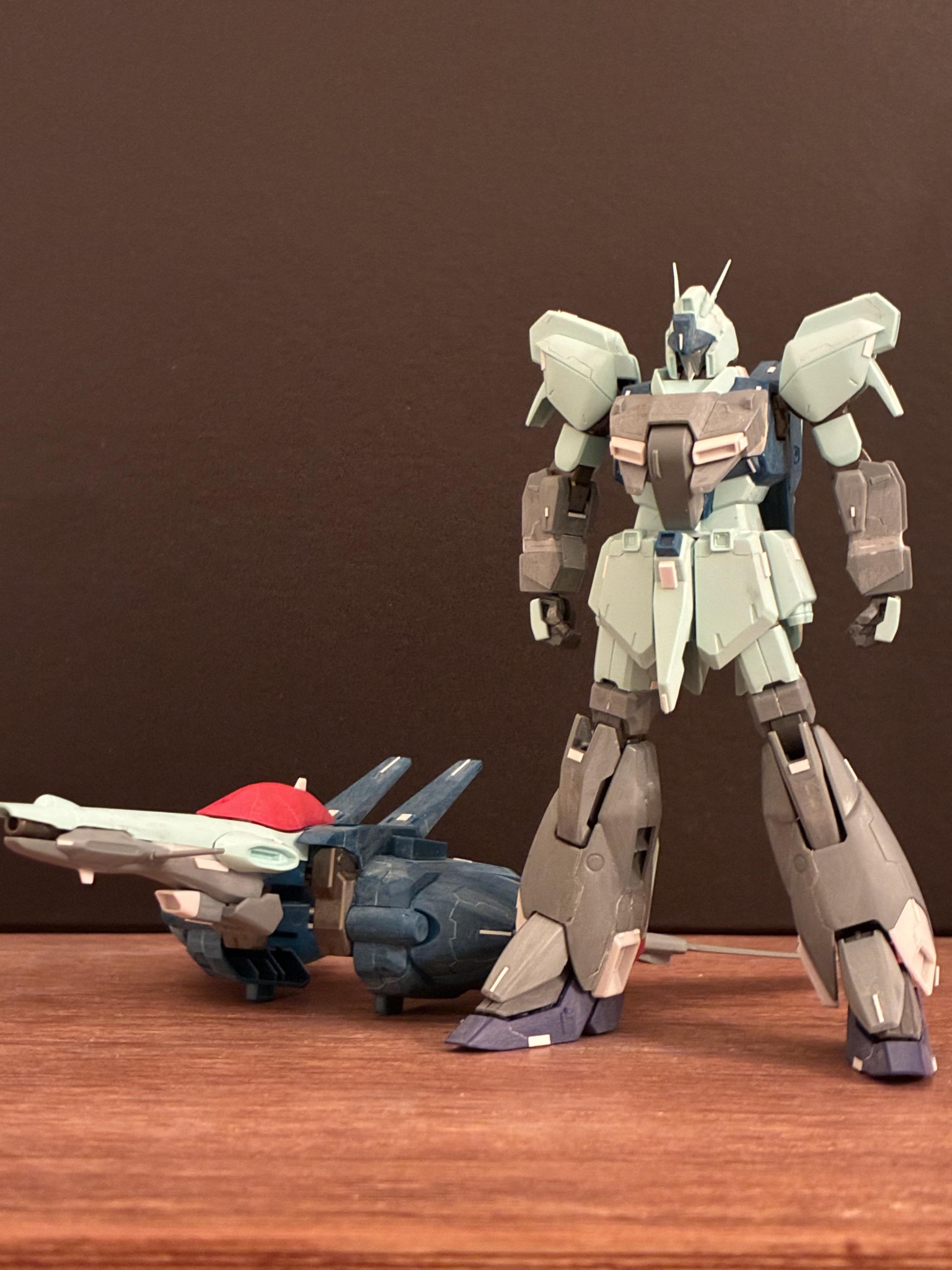 リ・ガズィをベースに、マスク、胸部前面、前腕、腿の下半分から下の脚部をゼータプラスのパーツに置き換えました。