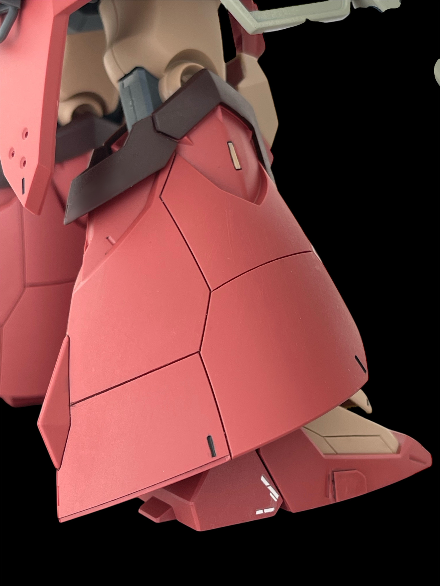 スカート上部は塗装していないので設定色と違いますが、本来の色であるライトブラウンのランナーから作ったプラチップを埋め込みました。