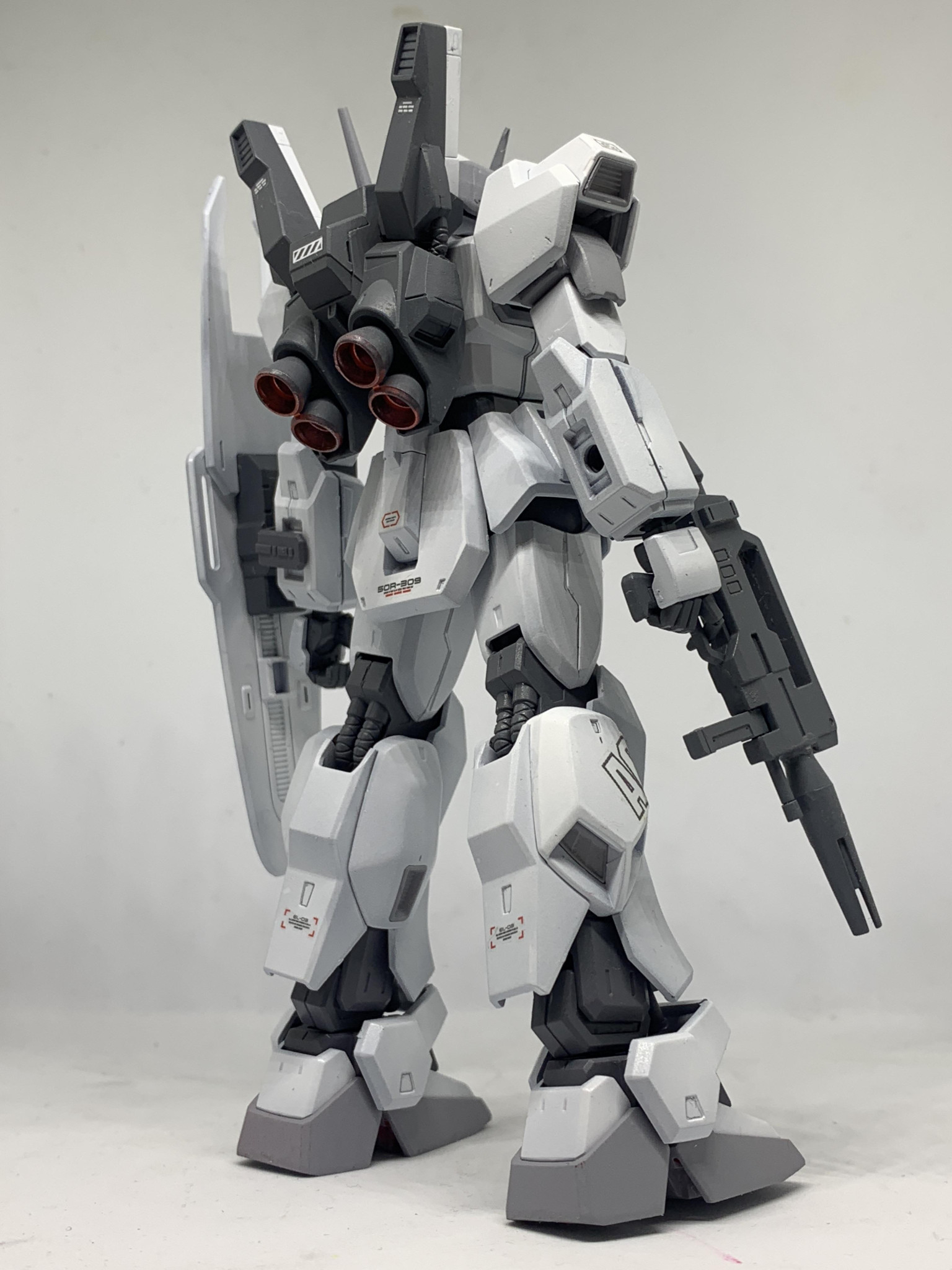 関節、バックパック、ビームライフル、バックパック裏の濃いグレー部分:メカサフライトをエアブラシ塗装