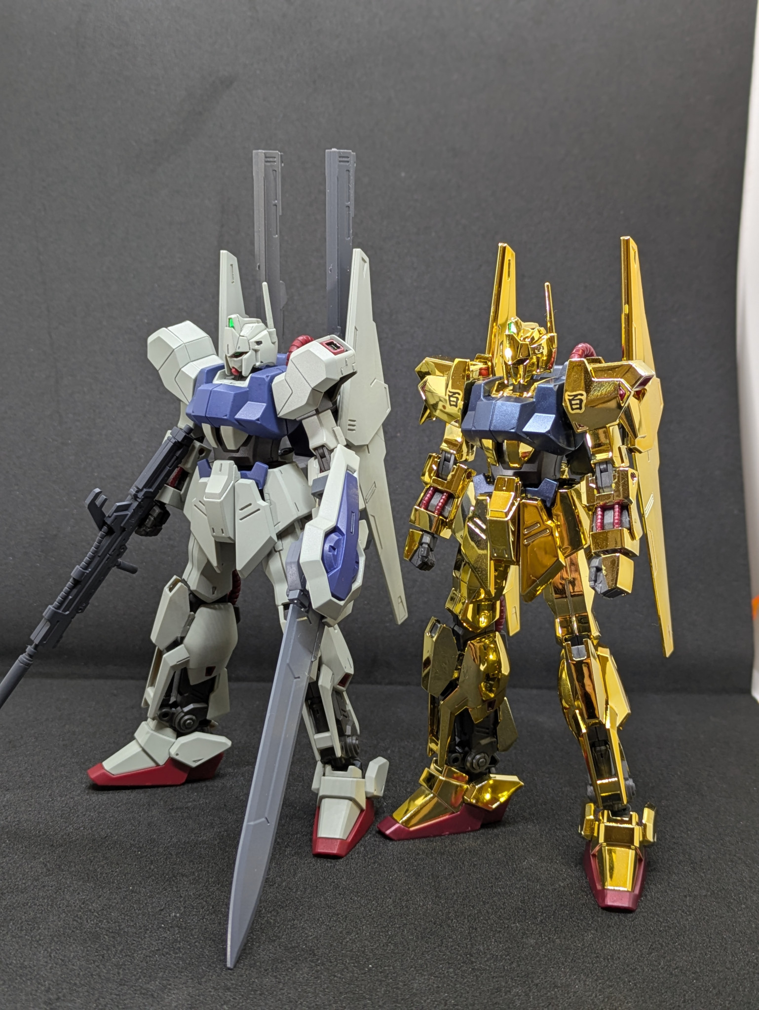 ベースはリバイブ百式をチョイス💕フェイスをガンダムタイプのお口有りに変更し、オレがガンダムさん特徴の武装を左腕にコンバートしました!