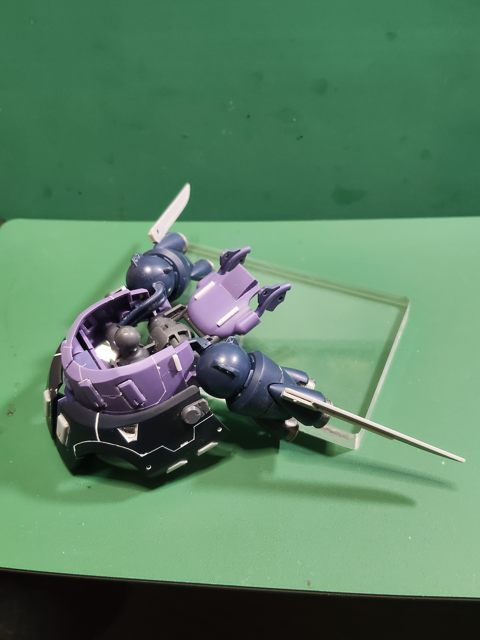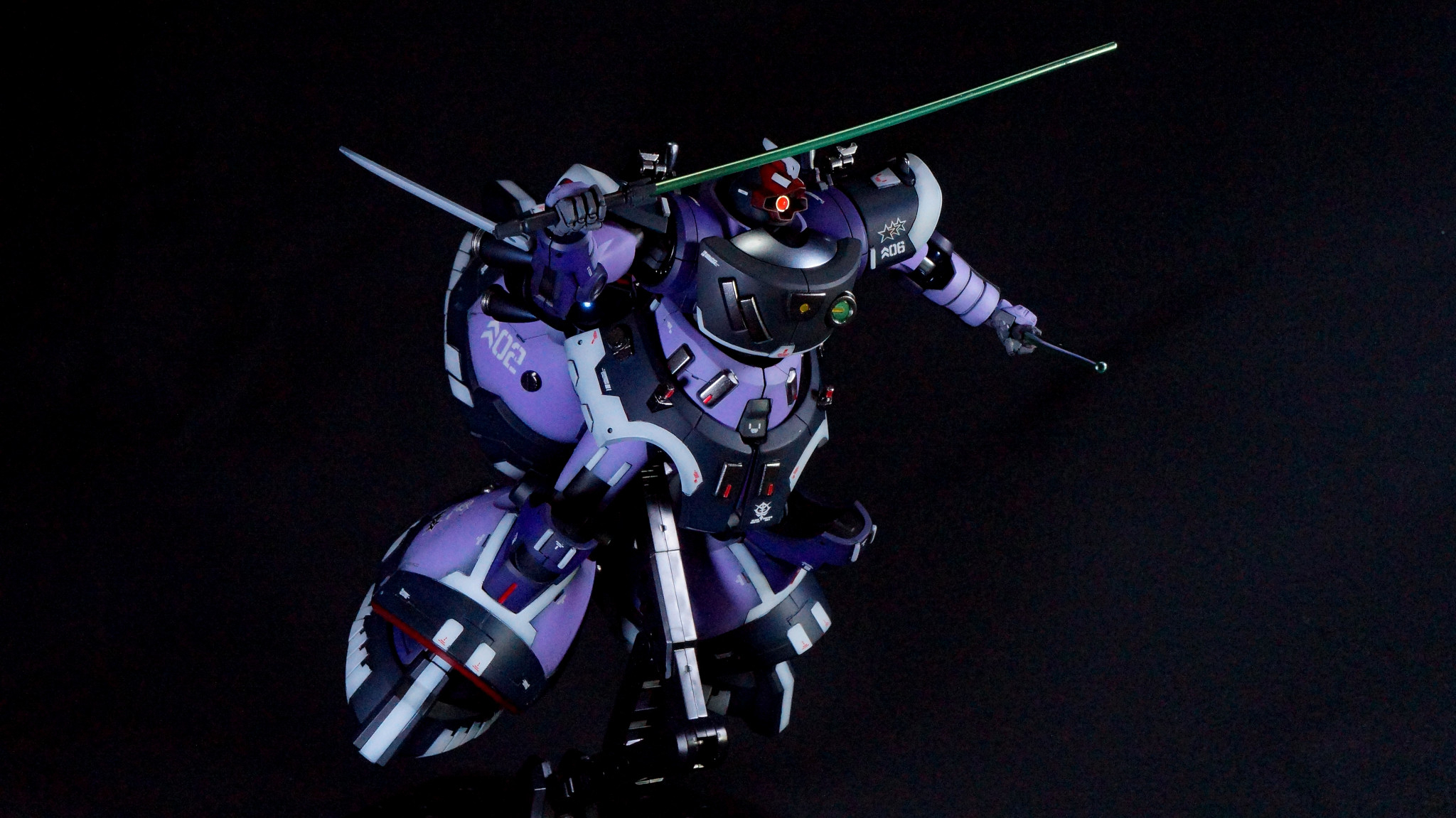 ちょっと光り方が微妙ですが、サーベルにはスターブライトアイアンを塗った上に蛍光グリーンとクリアを混ぜて塗っているので、UVライトで光ります。