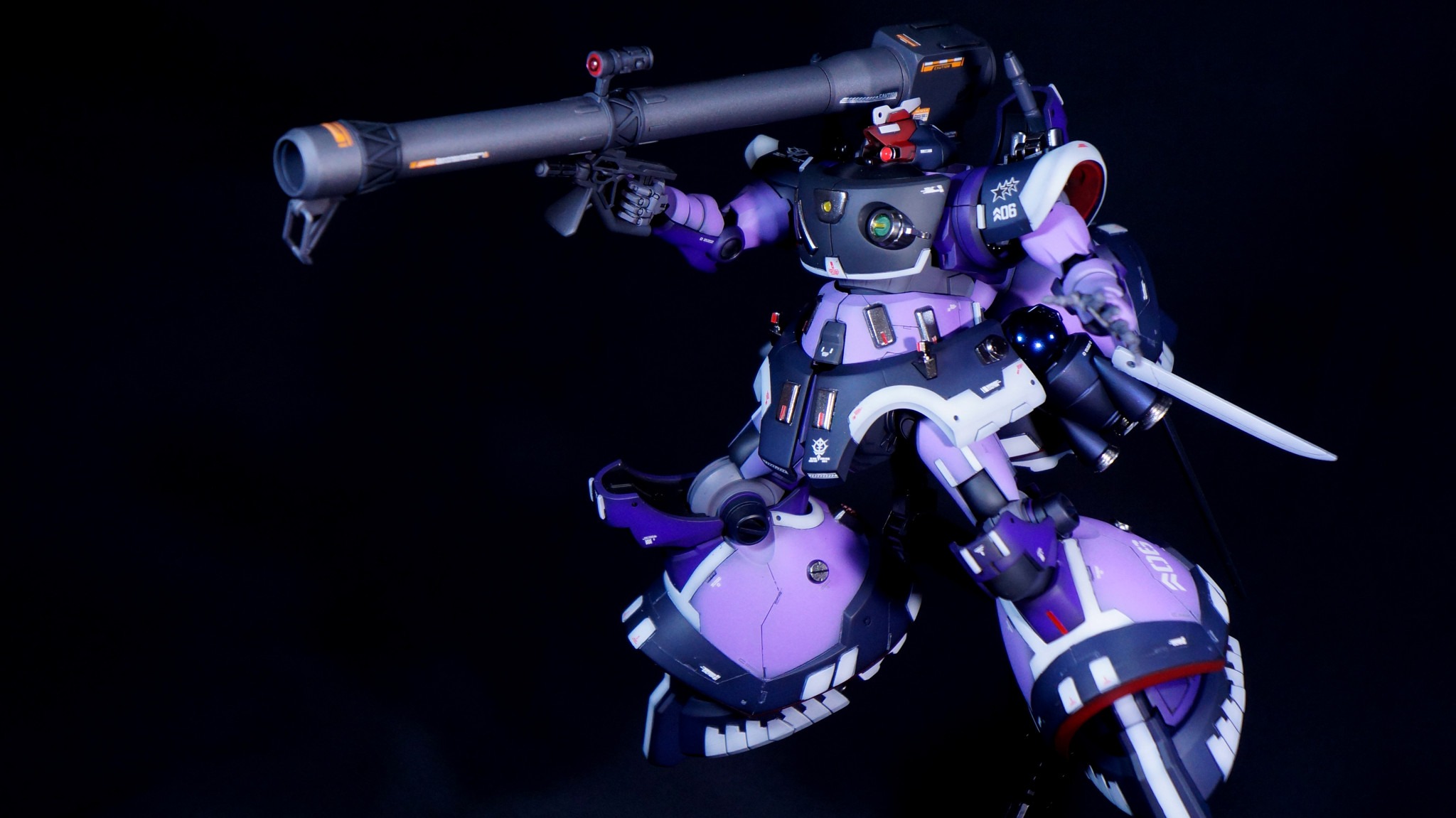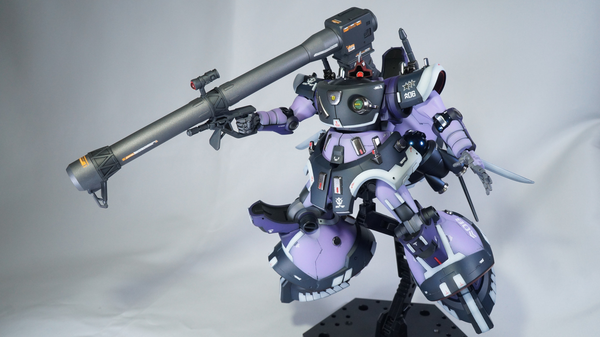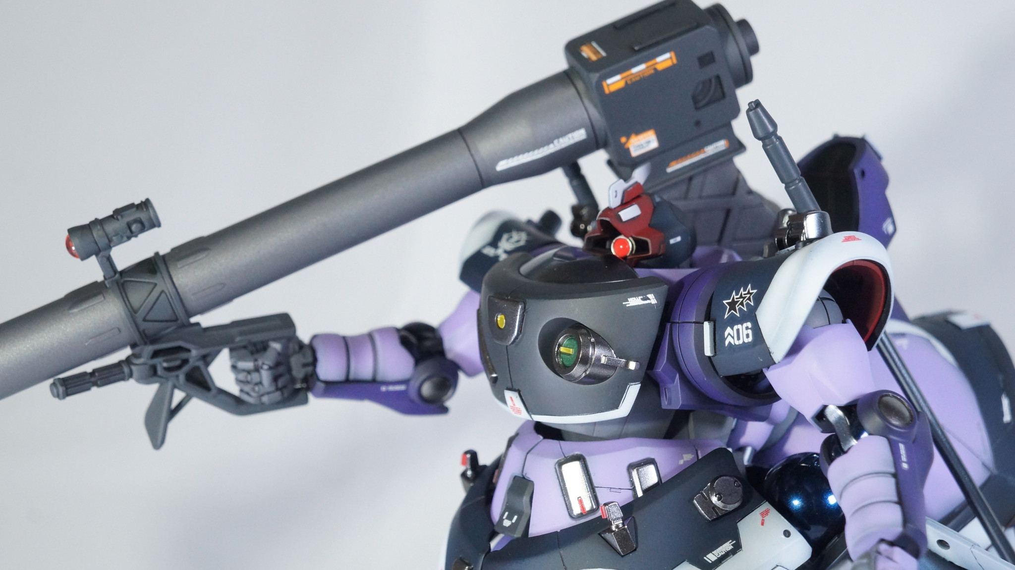バズーカも2色で塗り分けています。砲身がサーフェイサーEVO ガンメタのまま、他のグレーがメカサフスーパーヘヴィです。バズーカにだけエディオンオリジナルのデカールを貼っています。