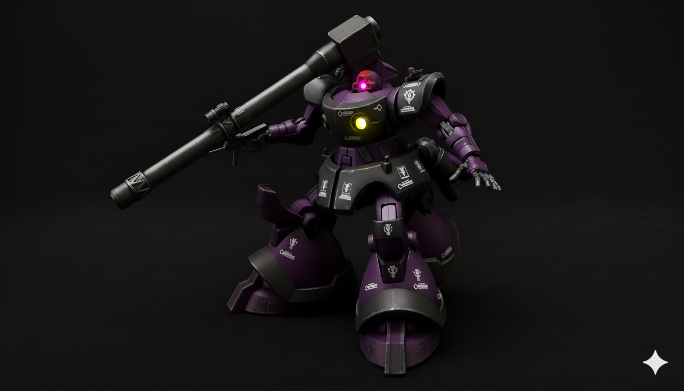 すいません、最近nano bananaの1日の使用制限が少なくなってしまい、いろんなバリエーションが作れませんでした。ので、ドムは同じポーズ使い回しです…。(gundam-kao9)