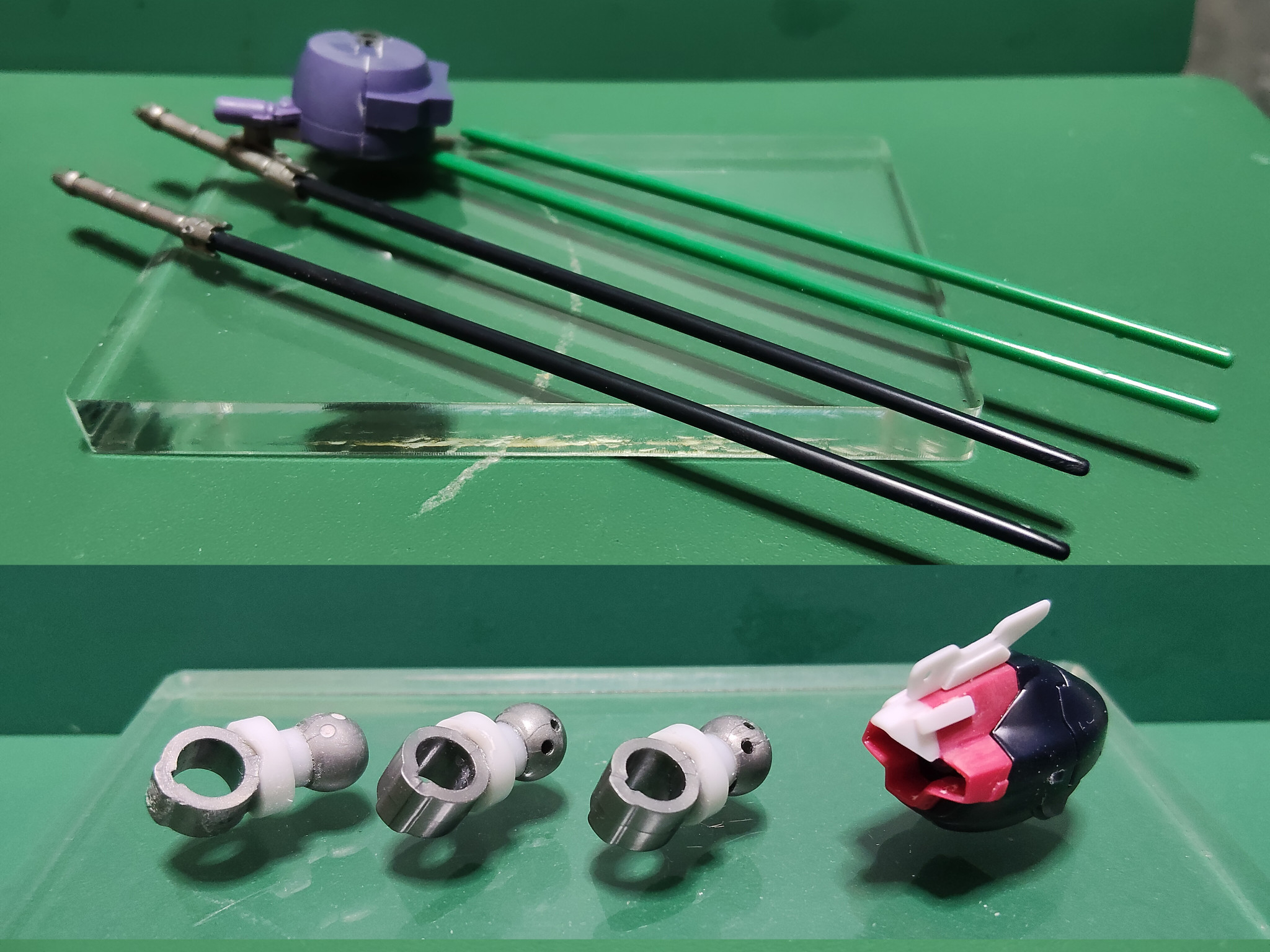 また足首は3㎜ほど延長しています。ボール部分を切り離して穴をあけ、そこにプラ棒を通した後に元々の軸と一緒にプラパイプに通して接着することで強度を確保しました。