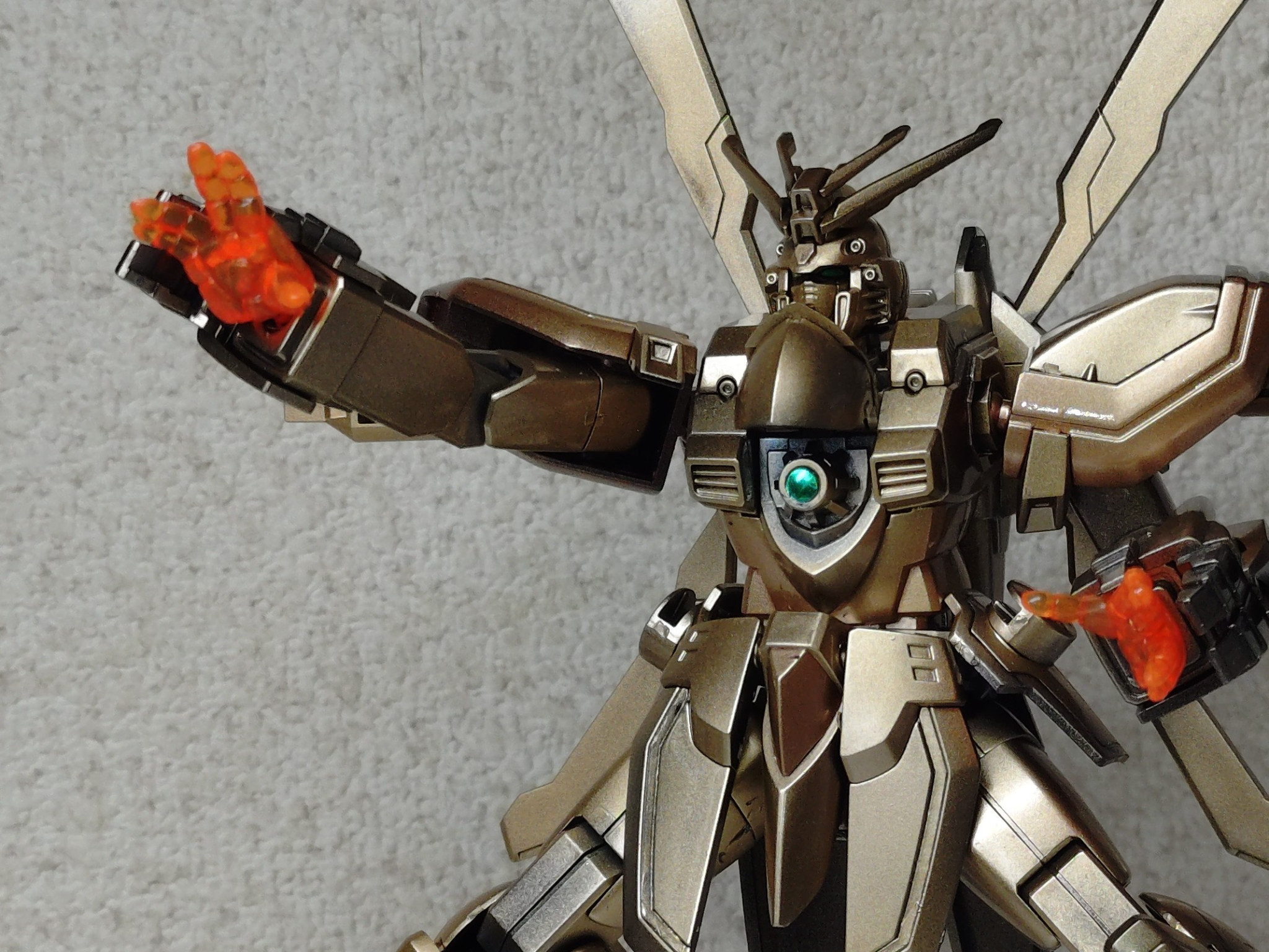 @syunkich… HG 2026.03/15更新 明鏡止水 40 23 いいねしたモデラー(23) 0 0 作品を共有 一度はやっておきたいシリーズ、ゴッドガンダム明鏡止水モードです。 史上最も熱苦しい漢が、悟りの境地に達した姿。HGでも、しっかり片足立ちポーズを取れるバランス感覚は見事です。黒下地にブルーやレッドのメタリックで塗分け、最終的にゴールドを満遍なく吹きました。レッドの下地は割と反映してくれますね。ゴールドはメタリック成分が分離しやすくて、上手く発色させるのが難しかった。石破! 天! 驚! 拳‼️ヒート エンドーーっ‼️‼️その熱い魂で、春を呼び込んで欲しいです。夏はまだ早い…。 HG 機動武闘伝Gガンダム 明鏡止水 ゴッドガンダム コメント コメントをして応援しよう コメントにはログインが必要です @syunkichi0291 中学生になる以前よりプラモデル製作から遠ざかってましたが、大人の手習いかの様にガンプラ始めました。 細かい細工や綺麗な塗装には程遠いですが、無機質なパーツに生命を吹き込む時間は、かけがえのないものだと思いながら作製しています。 6 ララァ専用ジオング アニメオリジナルだけでなく「こんなカラーリングがあったら…」… 1 そういえばザクの日だったんですね… 日が変わる前に、作製した歴代のザク達を…。これからも少しずつ… 6 量産機の完成形? ORIGIN版、ザクIIです。 6 グフには漢らしさを感じるのです 08小隊より、HGUCグフ・カスタムです。 @syunkich…さんのページ この作品をお薦め作品に設定する Please login to update your profile! Please login to update your profile! Please login to update your profile! Please login to update your profile!