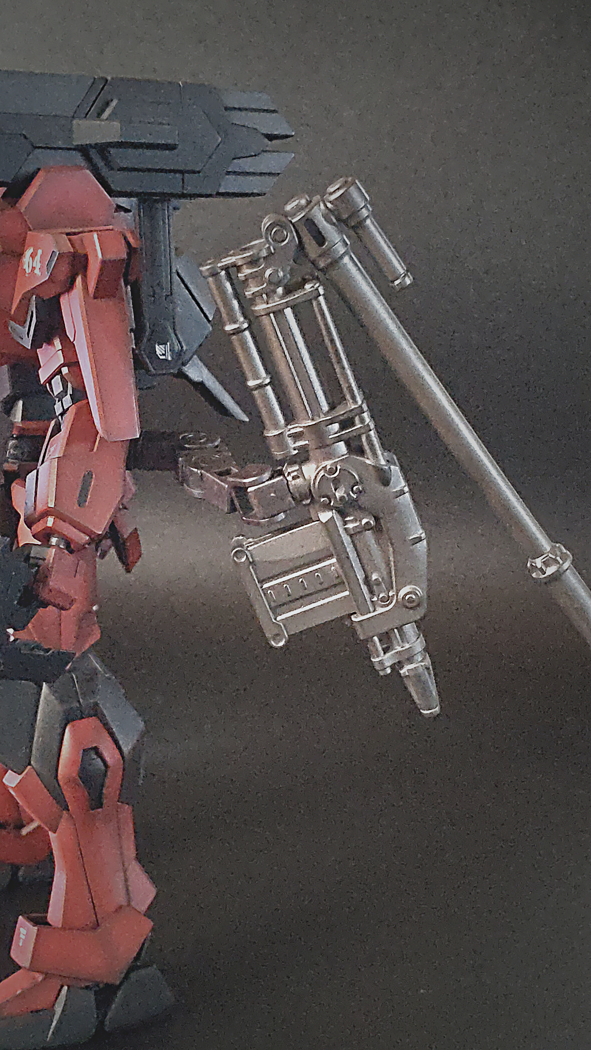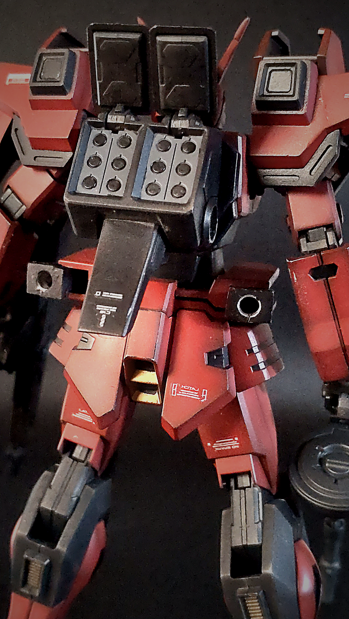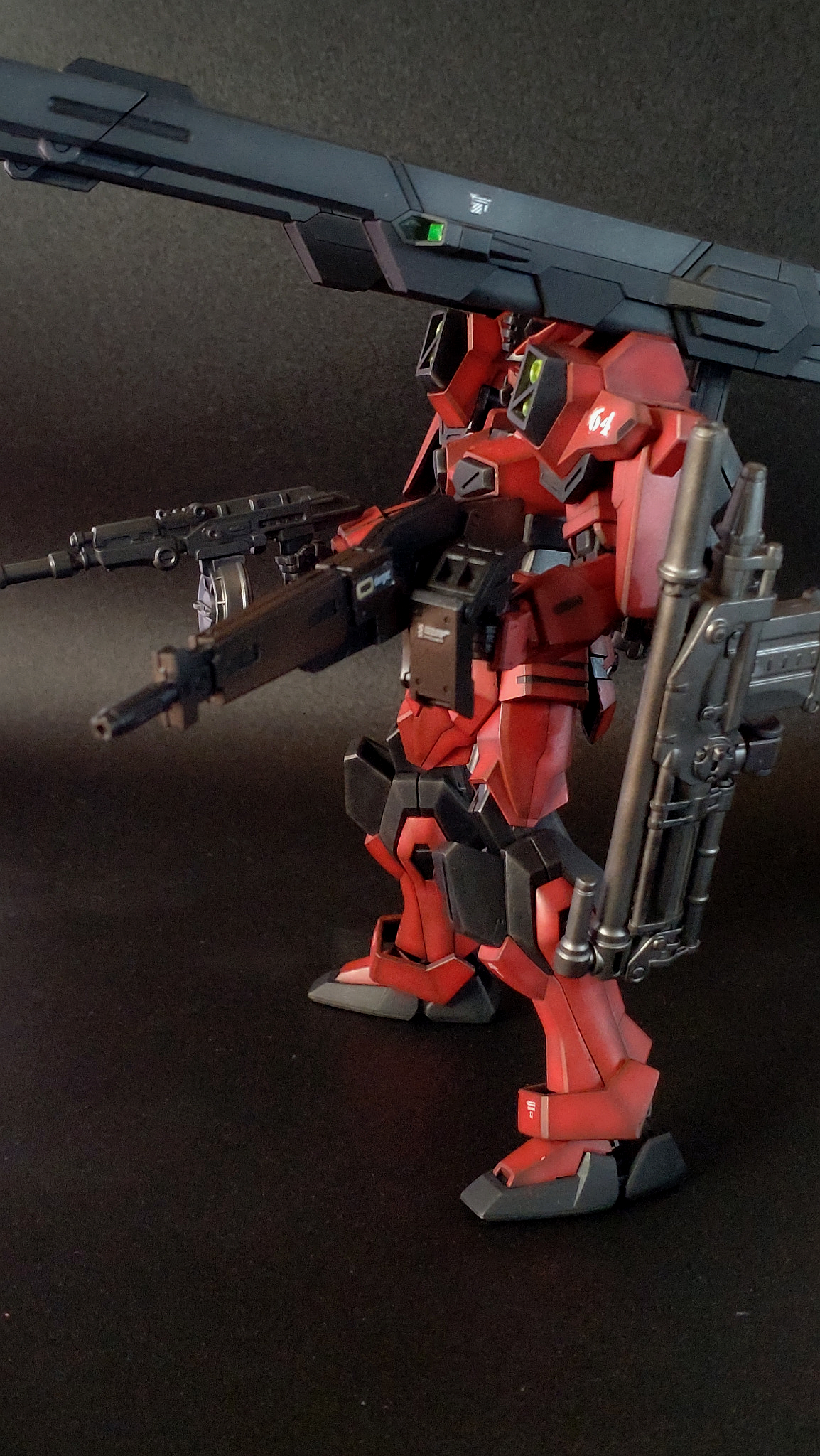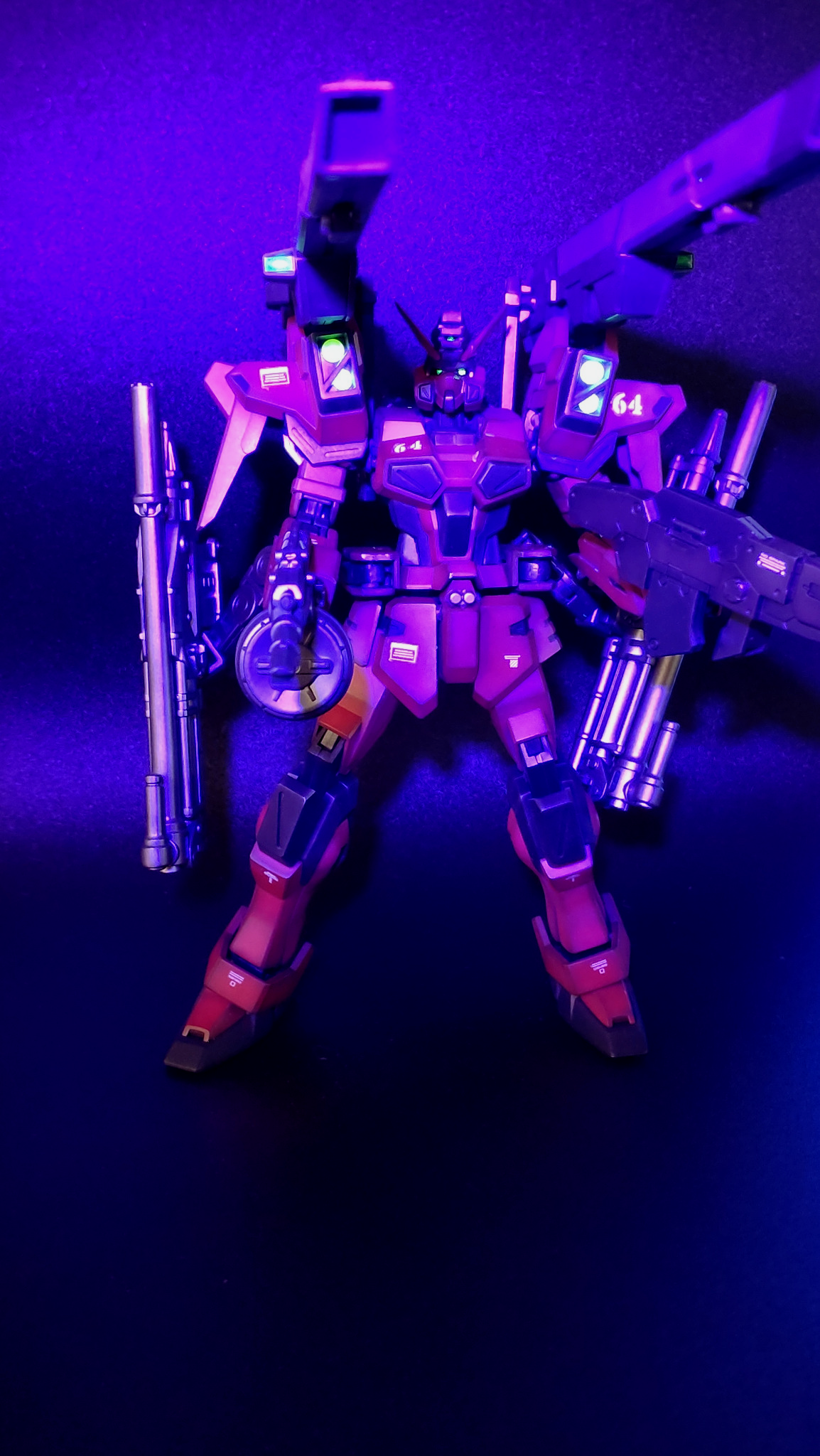 HGのライトニングバスターに武装モリモリで見るからに壁と思える様に作りました。元の武装にマシンガンとライフル両手持ち、腰にはロングキャノン砲と盛りだくさんにしてみました。