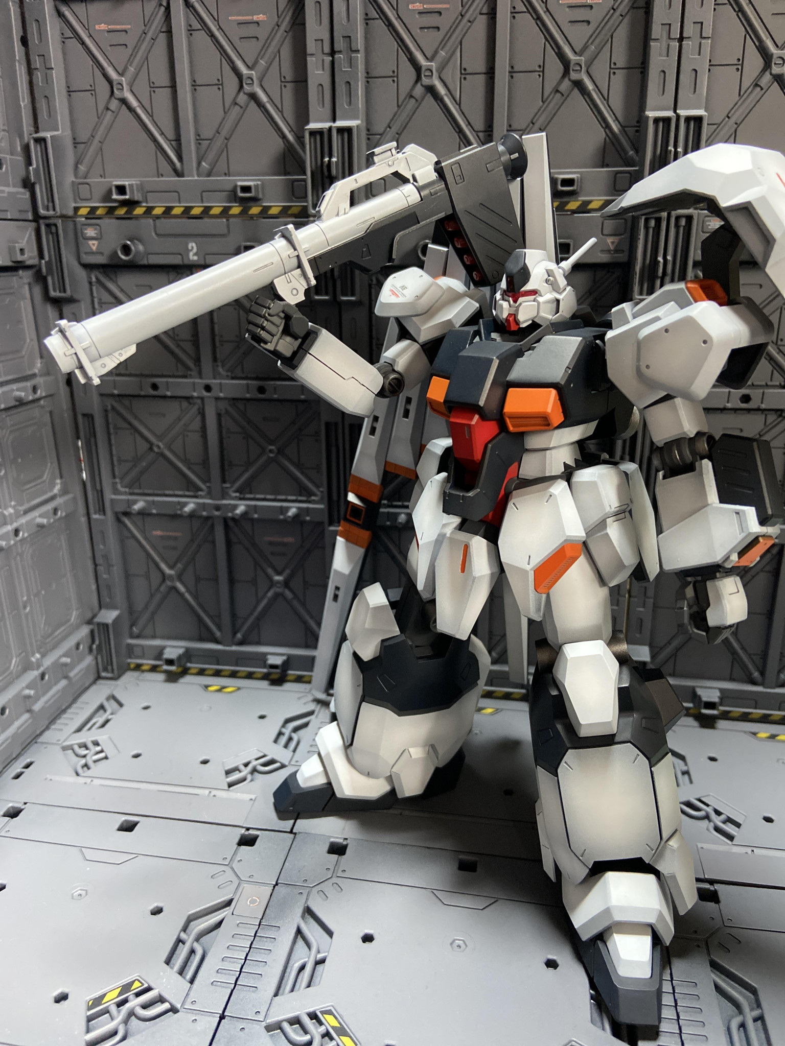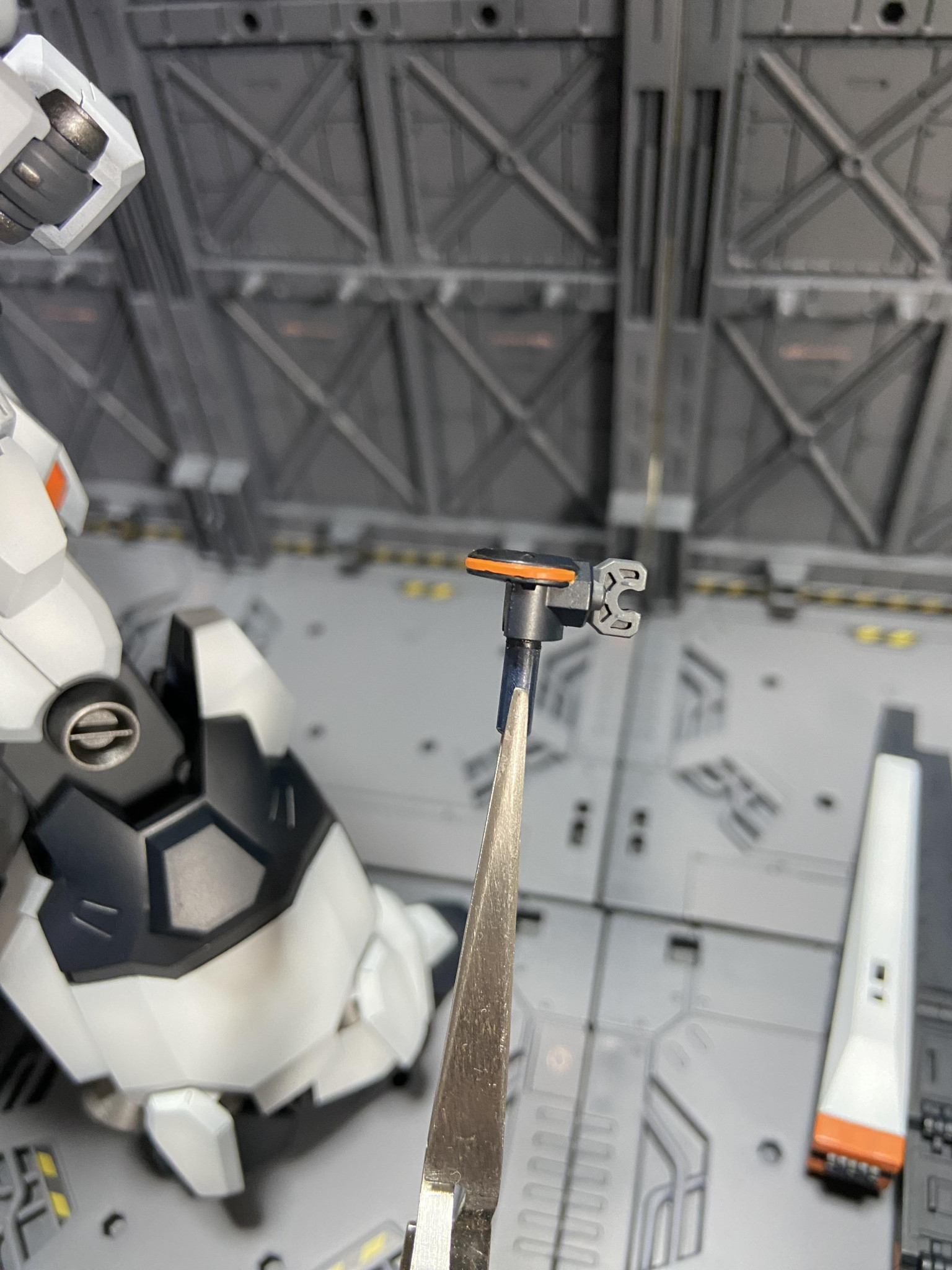オプションパーツ19に付属のバズーカも合わせ目を消し塗装しましたが、肩に担ぐ事ができない…………作る前に確認しとくんだった………