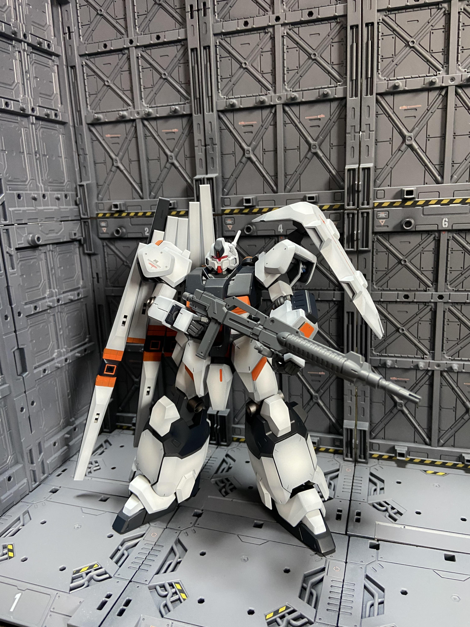 HGですがそこそこ大きく存在感有ります、塗装もいい感じにνガンダムっぽくなったので大満足です!