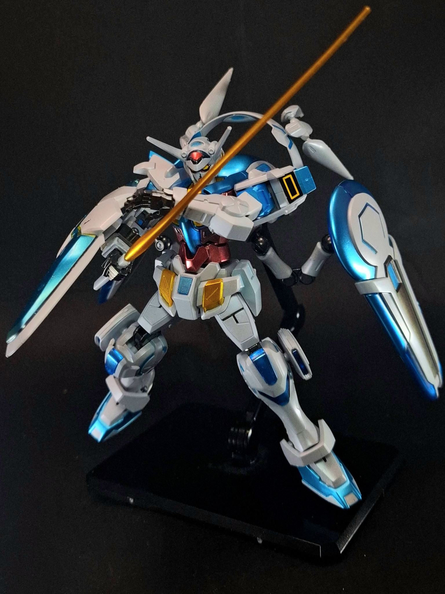 襟元に2本マウントしている接近戦用の武器。こちらも宇宙世紀時代と同じくメガ粒子を磁場で剣状に収束している。刀身は細身だが伸縮が可能で、切断力はかなり高い。マニピュレーターに持たせたままで高速回転させればビーム・シールドとしても機能する。
