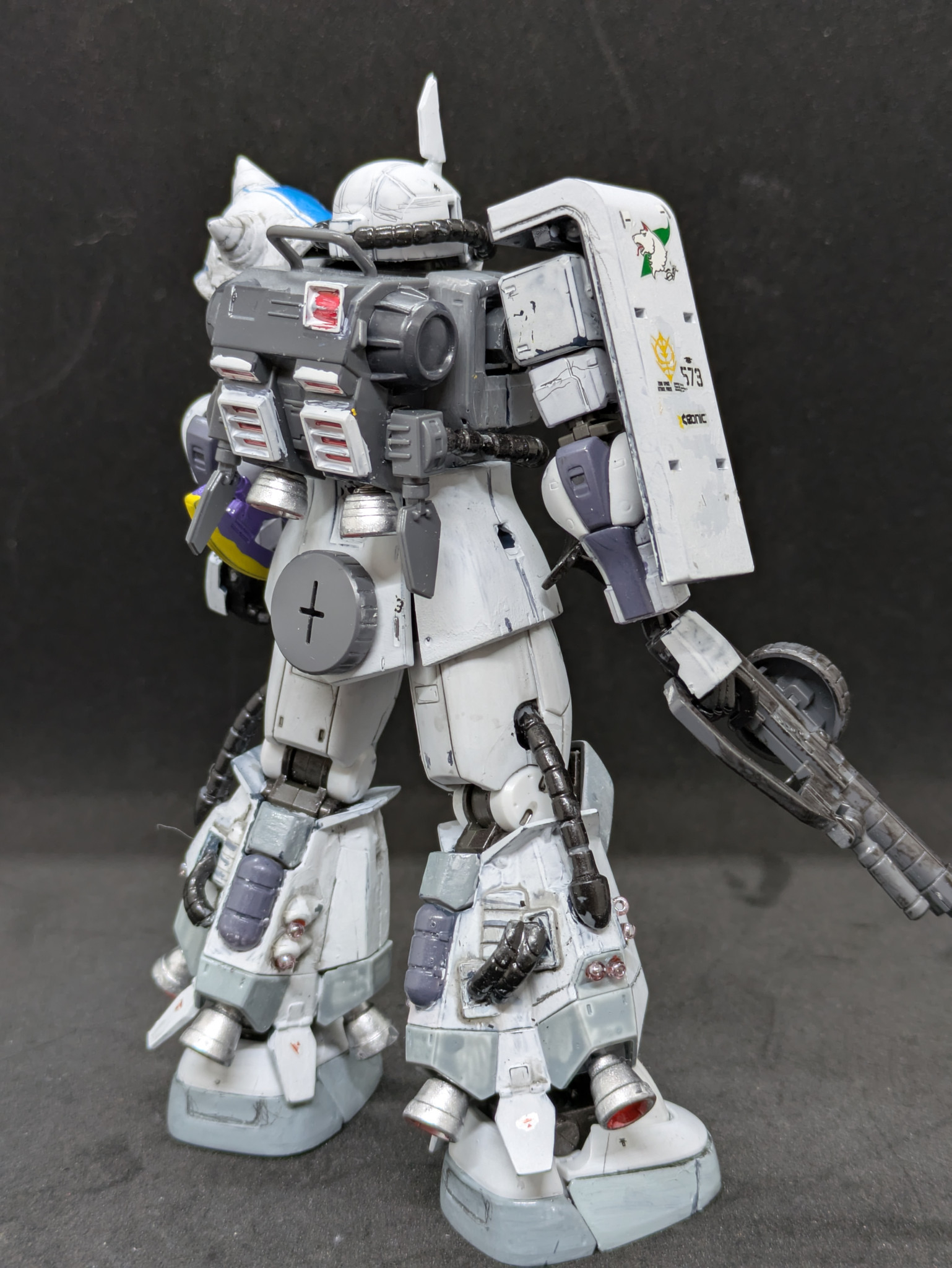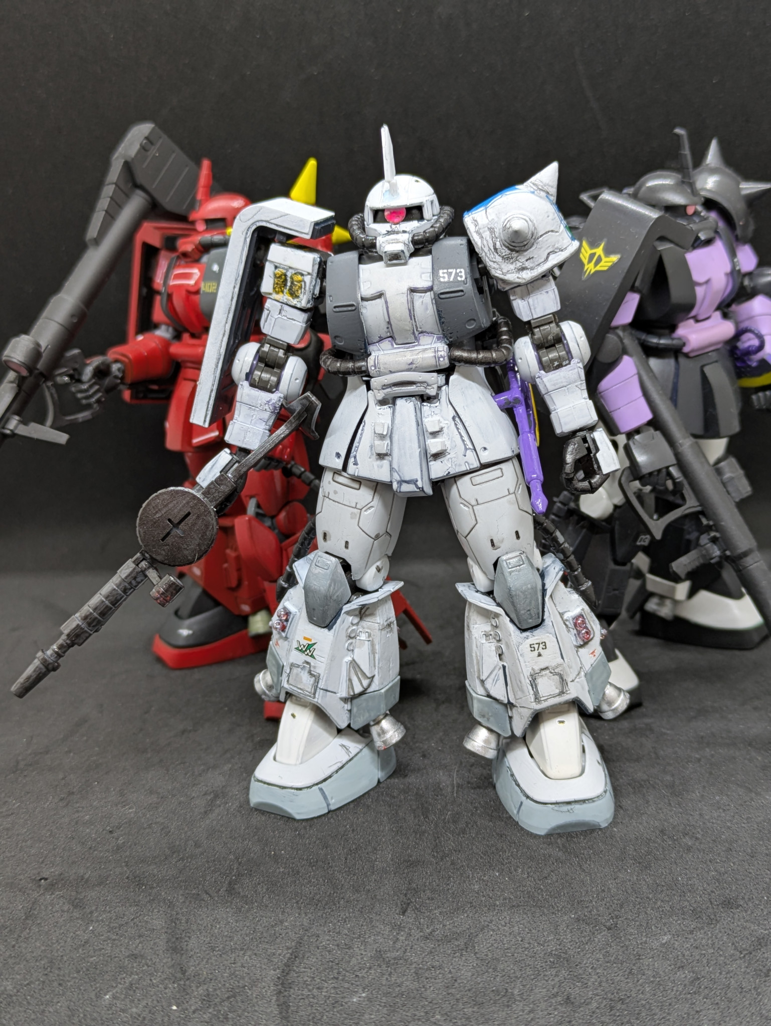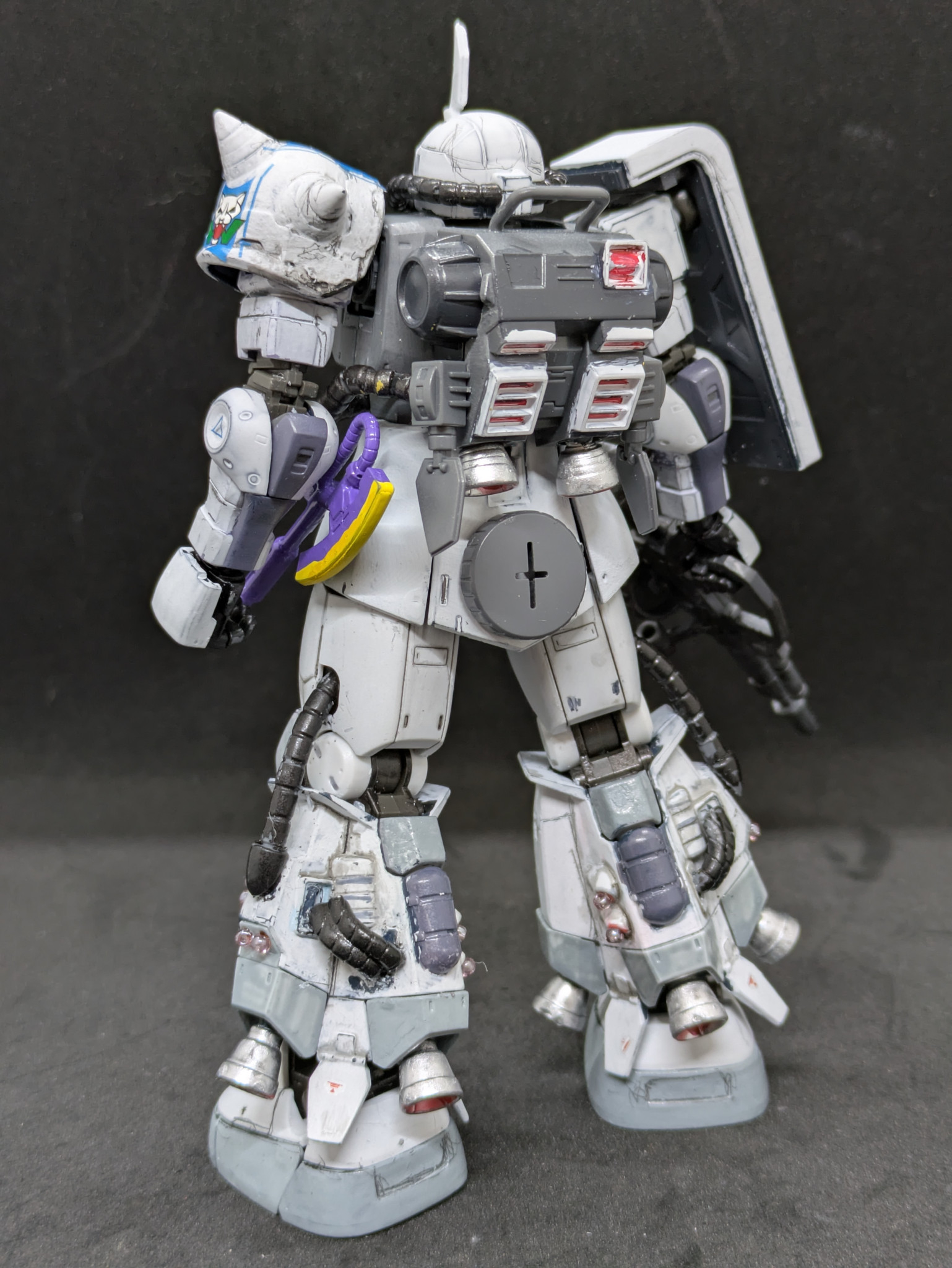 そこで発売当時にオルテガ機に付属しているジャイアント・ヒートホークが欲しくて買ったのですが、武器だけ作って放置していた黒い三連星を白く塗っちゃおうと思い、制作しました。