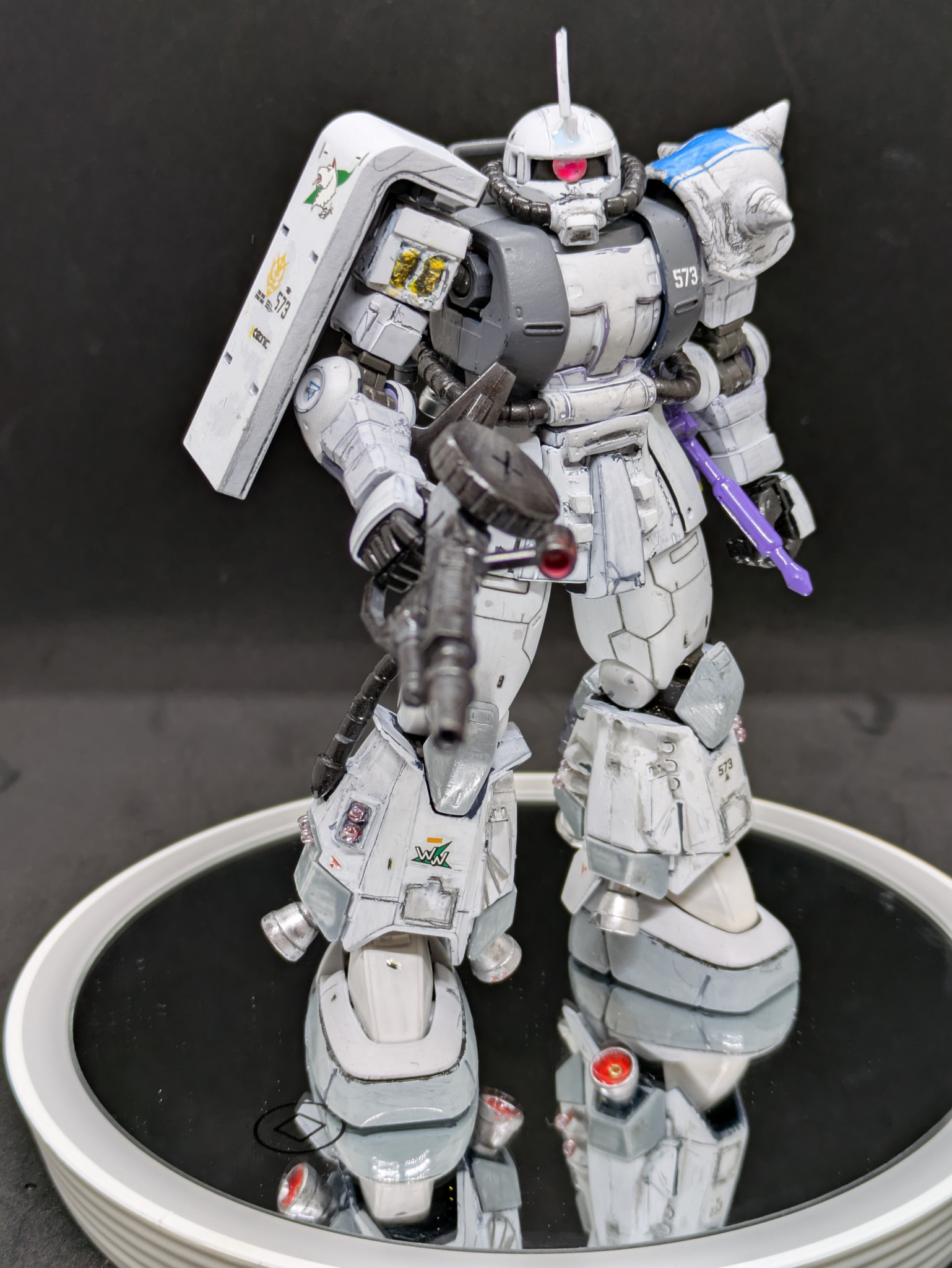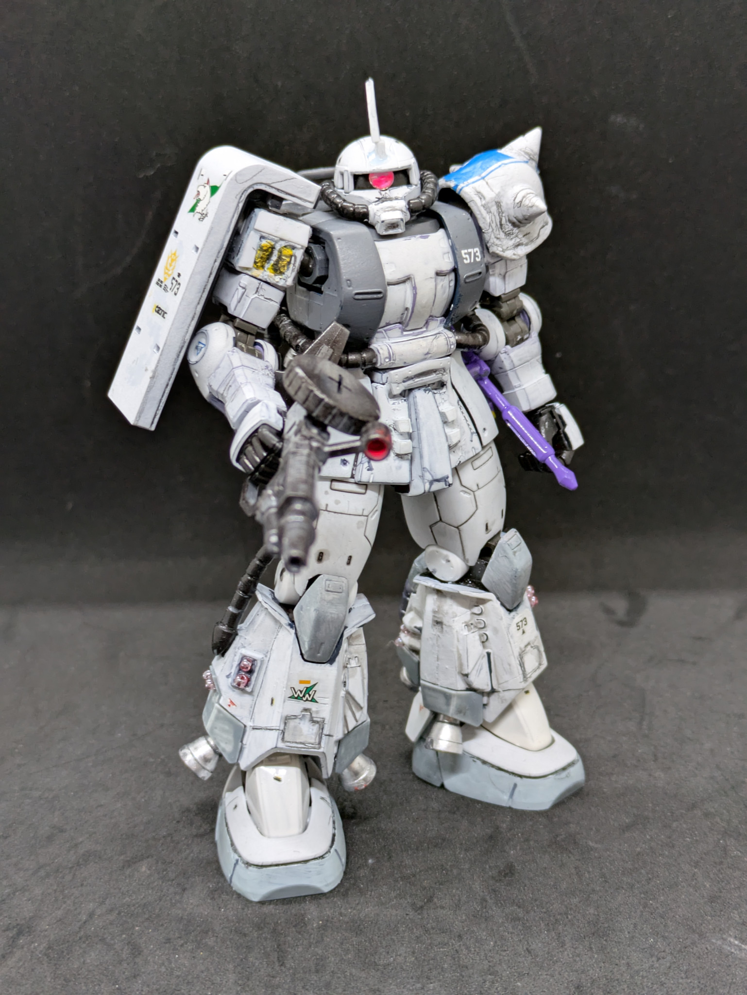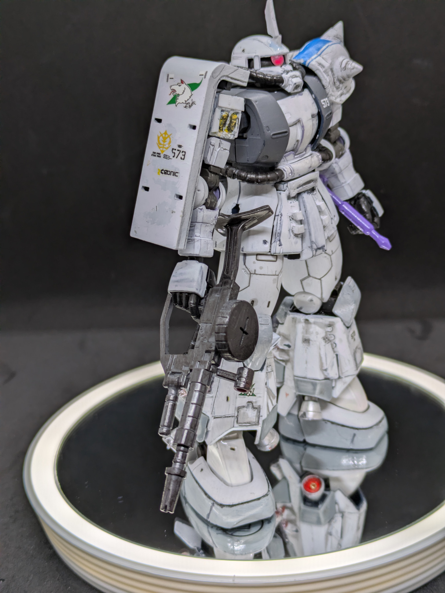 そこで発売当時にオルテガ機に付属しているジャイアント・ヒートホークが欲しくて買ったのですが、武器だけ作って放置していた黒い三連星を白く塗っちゃおうと思い、制作しました。