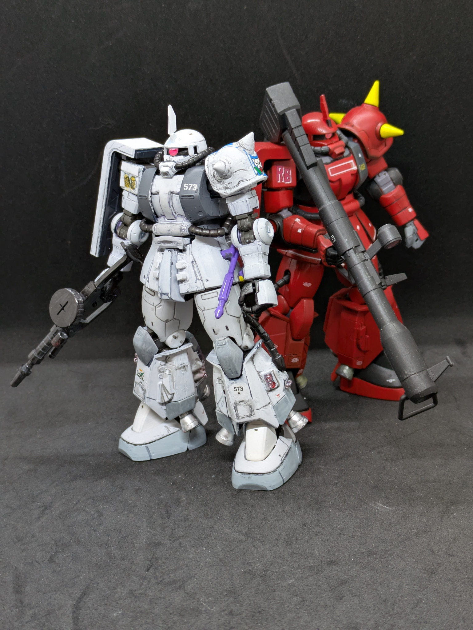 MSVを代表する「白狼」シン・マツナガ機と「真紅の稲妻」ジョニー・ライデン機を並べてみました。