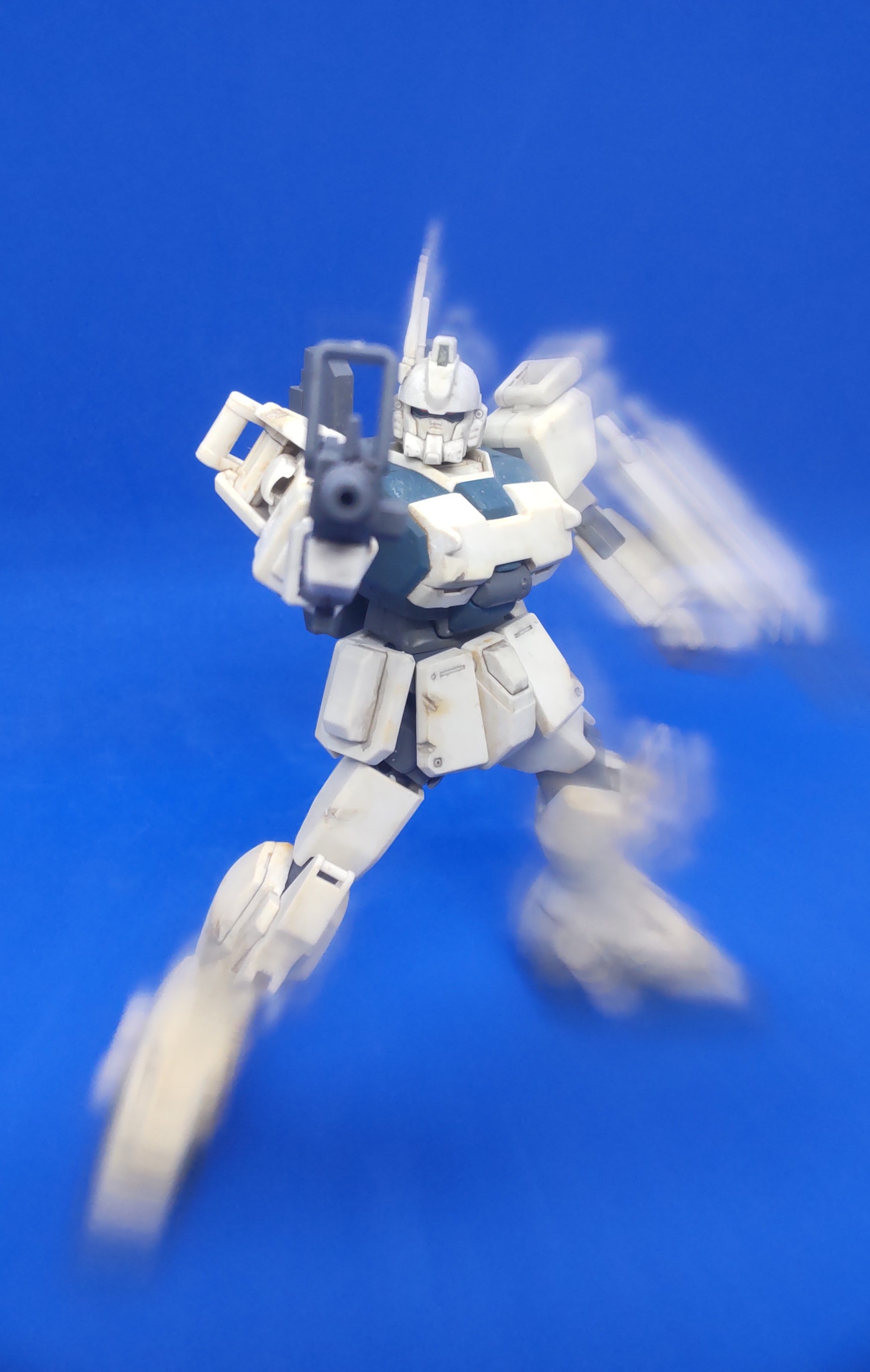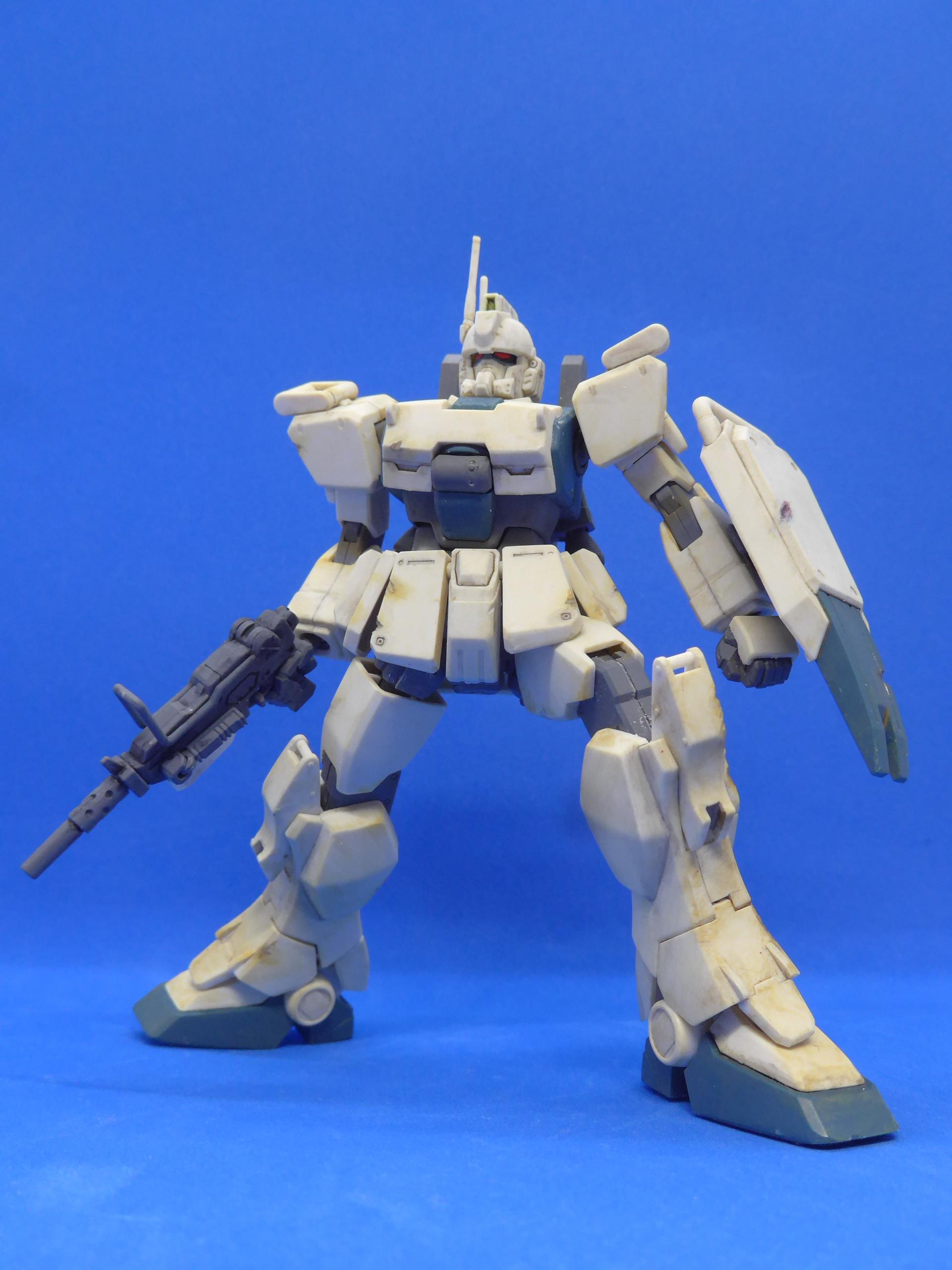 塗装はせず、バトルダメージ、墨入れ、ウェザリングで仕上げました。マシンガンがしっくりくるガンダムってやはり陸戦用だからでしょうか?