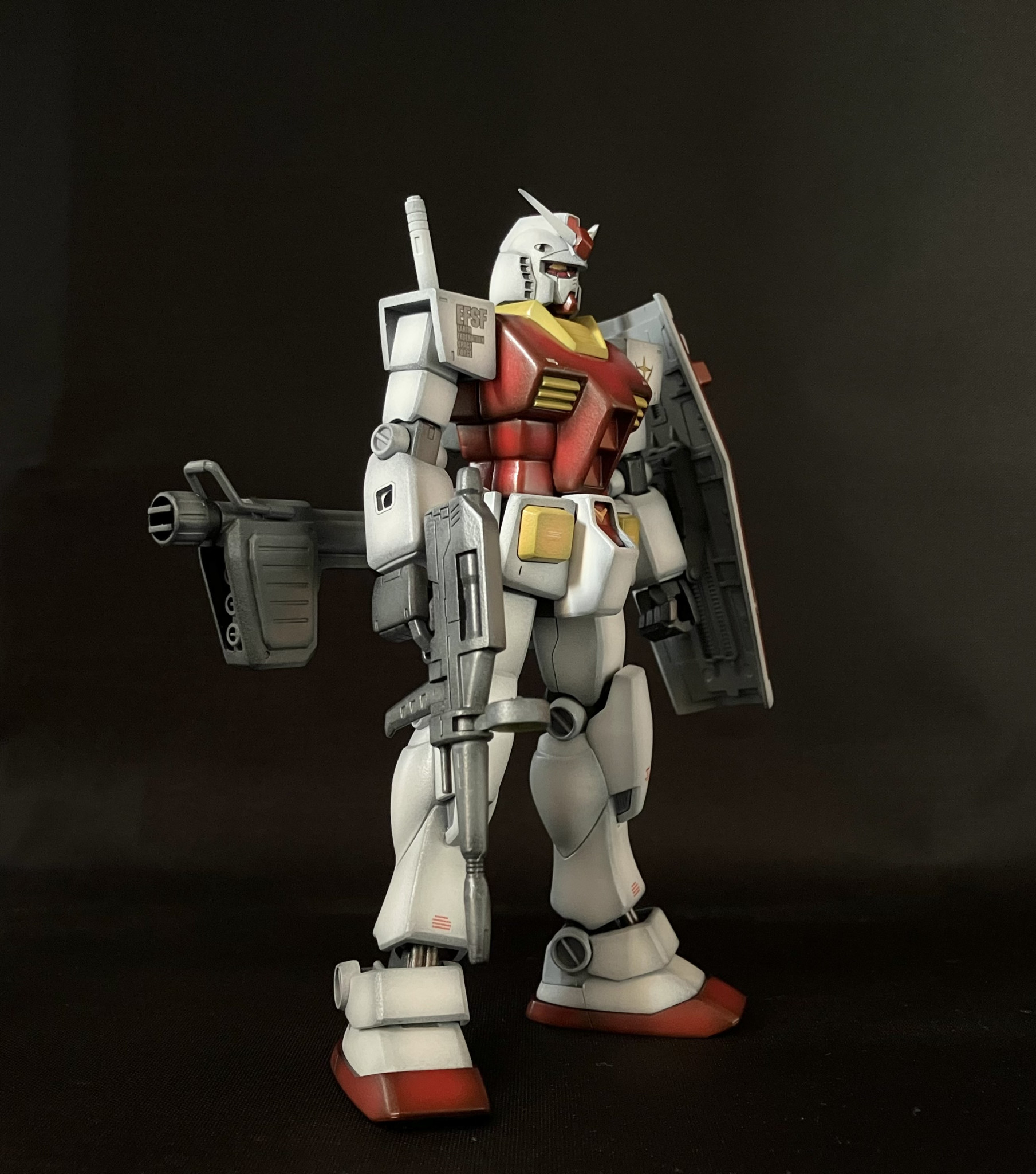 エコプラのHG RX-78-2ガンダムを1年戦争戦勝記念仕様カラーでグラデーション塗装しました。