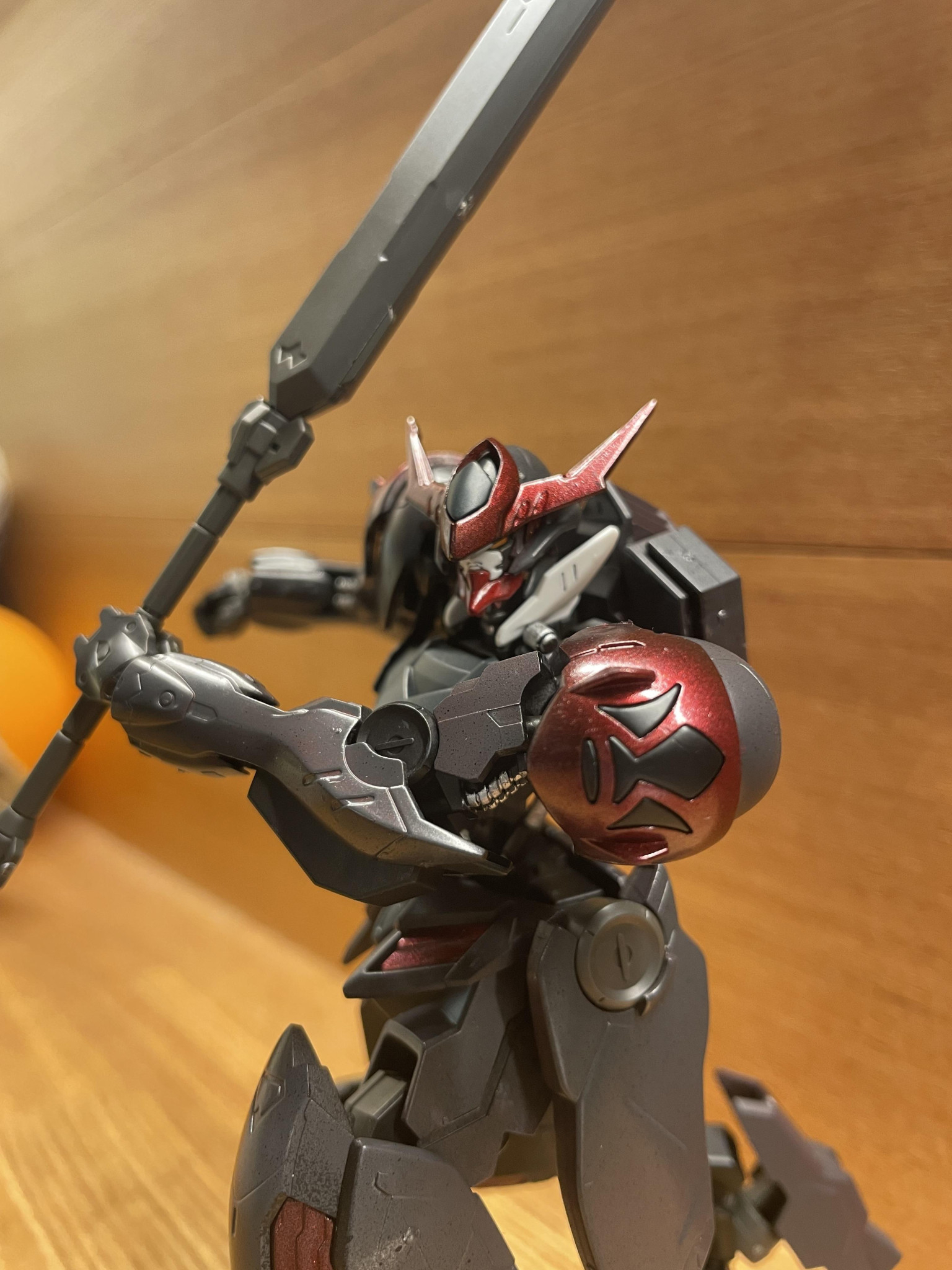 このバルバトスとかって、悪役顔ですやん!と思ったことありませんか?私はどう見ても悪役の顔してるのに、トリコロールにして誤魔化してね?みたいに思ってしまったので、思い描く悪役バルバトスルプスにしてみました。多少塗装の粗はありますが、温かい目でご覧いただけると嬉しいです!