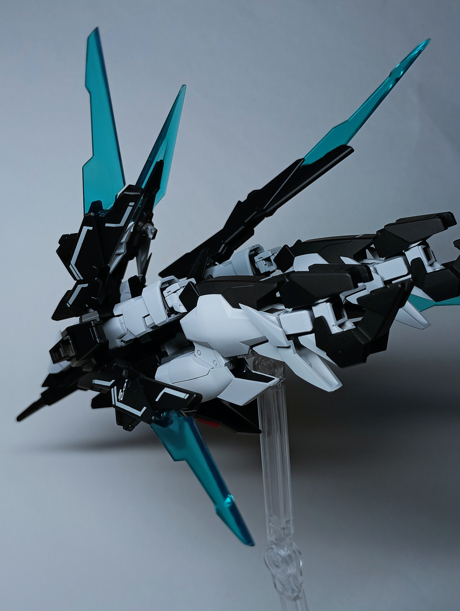 変形の際、肩やファンネルなどの一部関節は一度取り外してから位置を変えてもう一度差し込む方式に改造して、関節の強度を確保しています。
