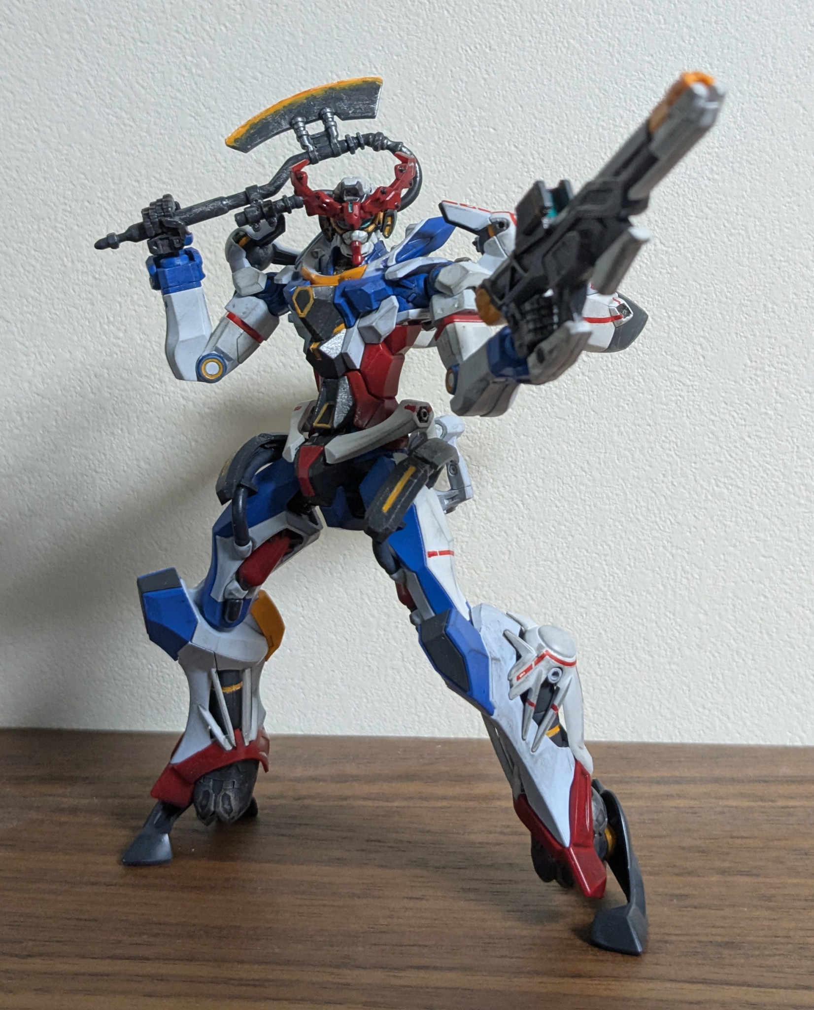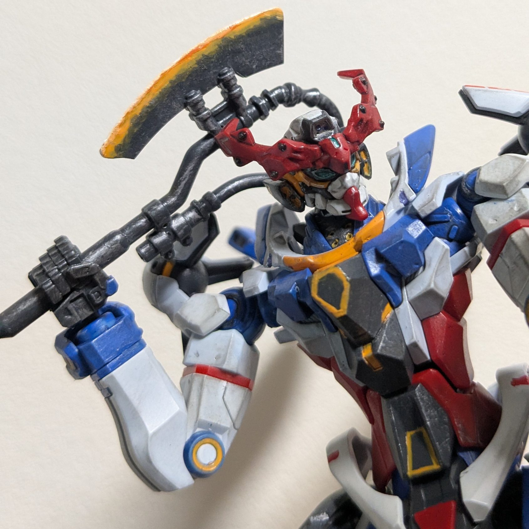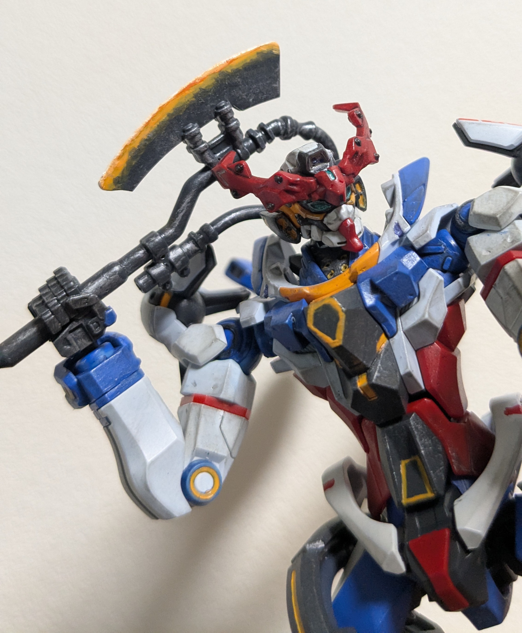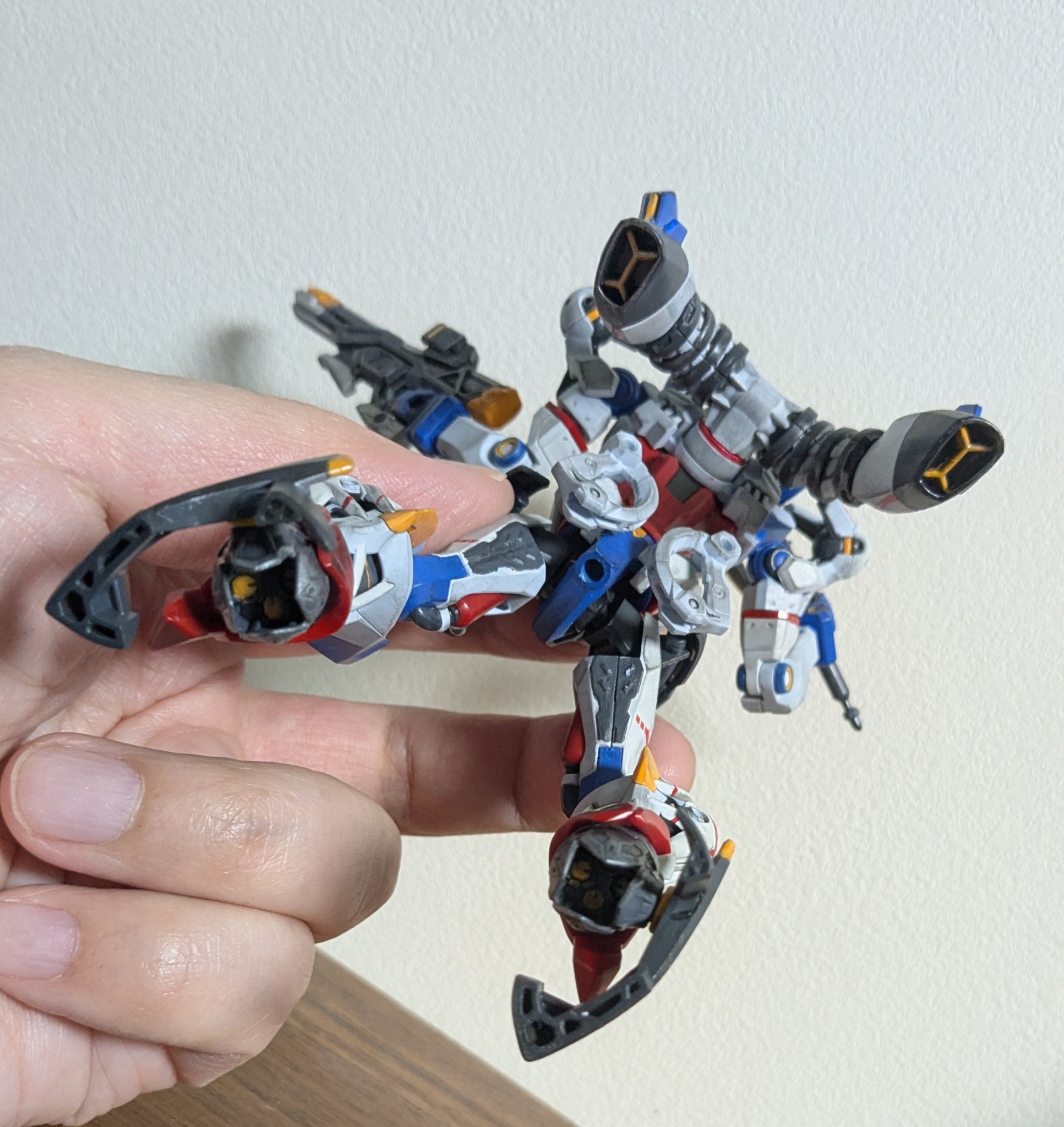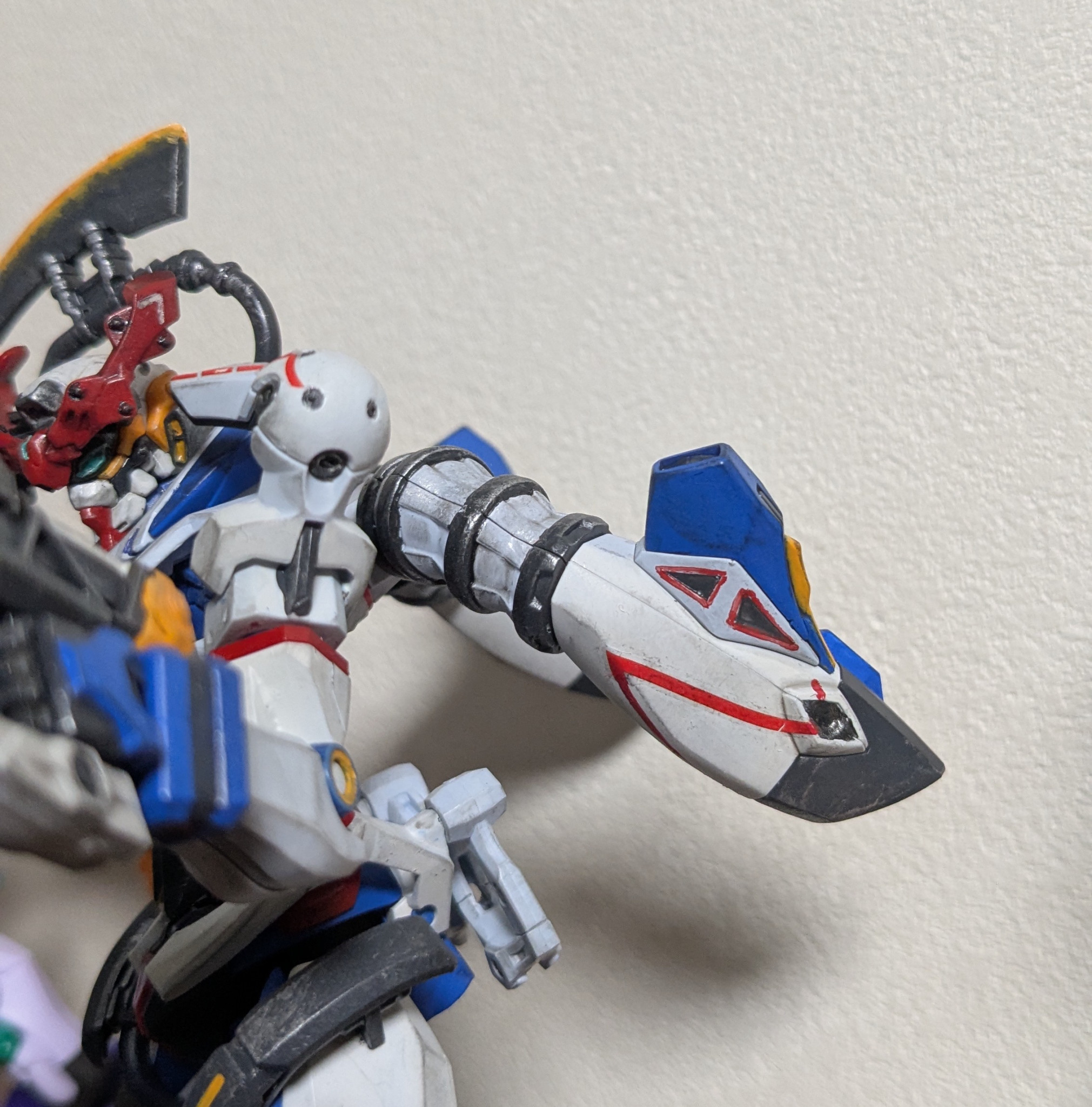 一応足裏のスラスター内部のオレンジも塗ったり。濃い成形色の上にオレンジはやめてほしいです。まじで。