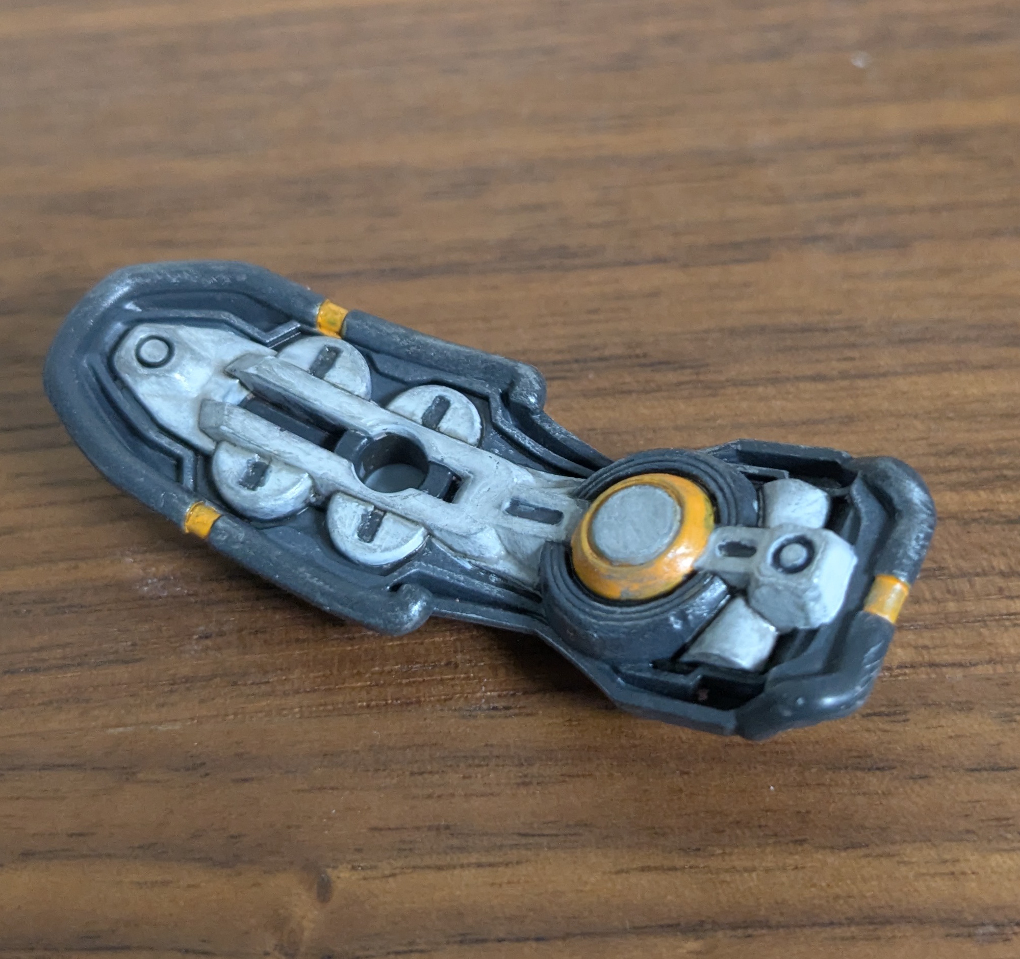 シールド裏側の塗装チャレンジ、筆オンリーだと私にはこれが限界です。汚したらごまかせるかなって思ったけれどだめだった。きたない。