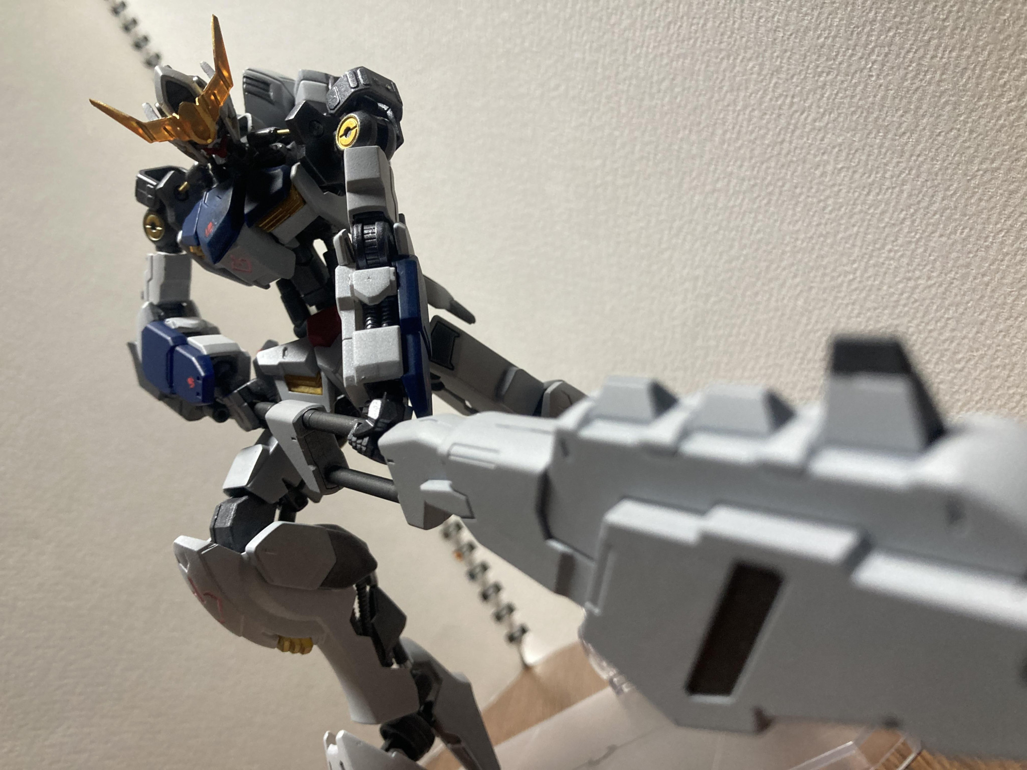 第3形態は、シュヴァルベグレイズを持ってないので、ワイヤークローとフライトユニットを自作しました。ワイヤークローにはボードウィン家の家紋のデカールを貼ってます。