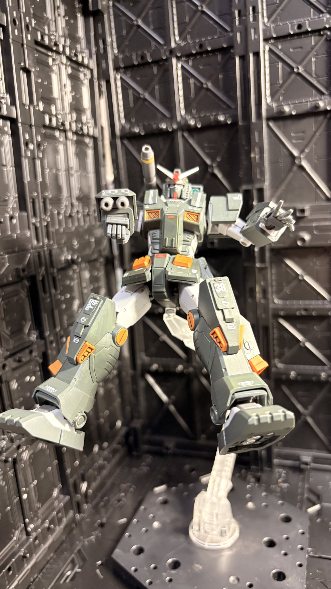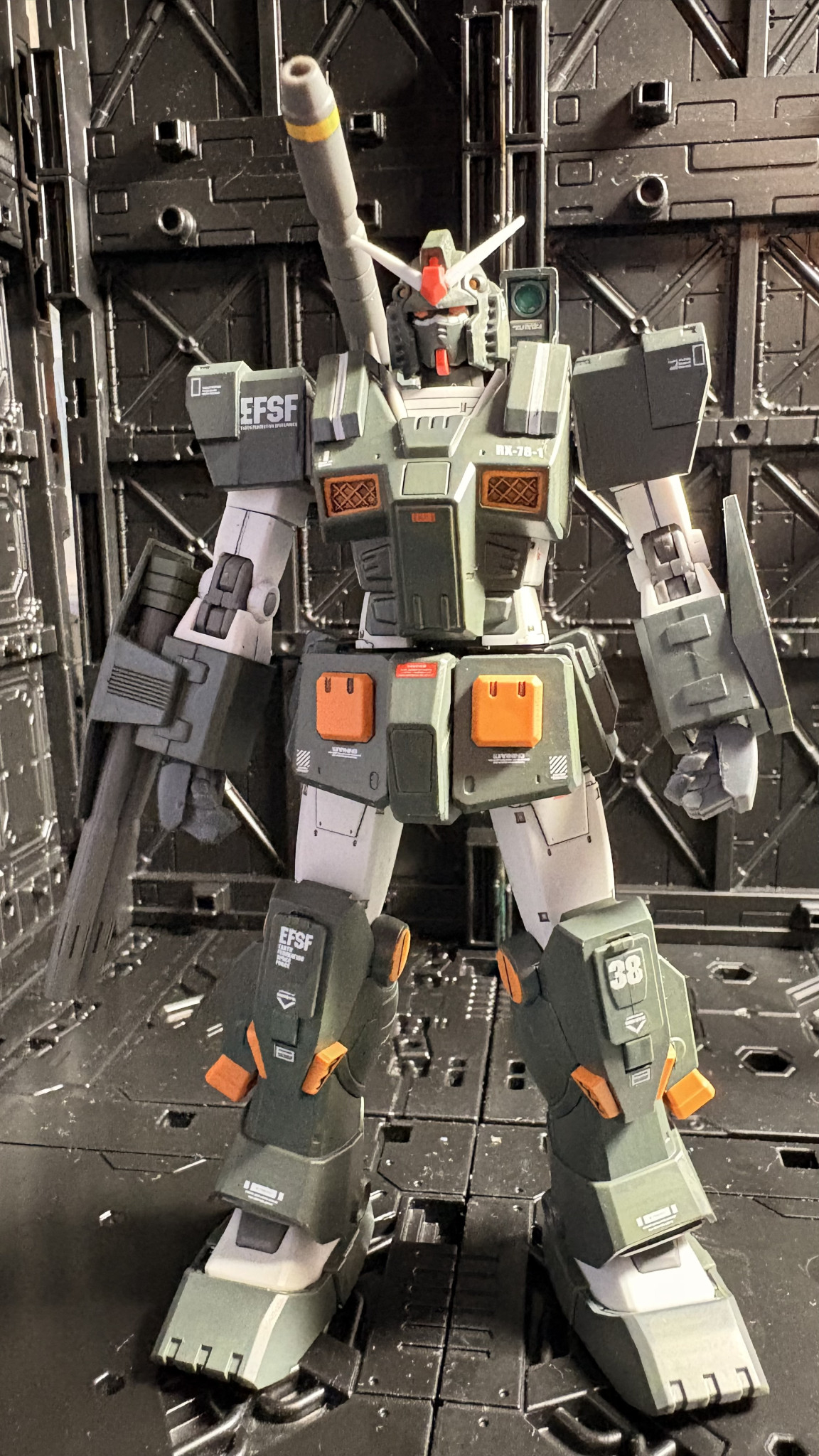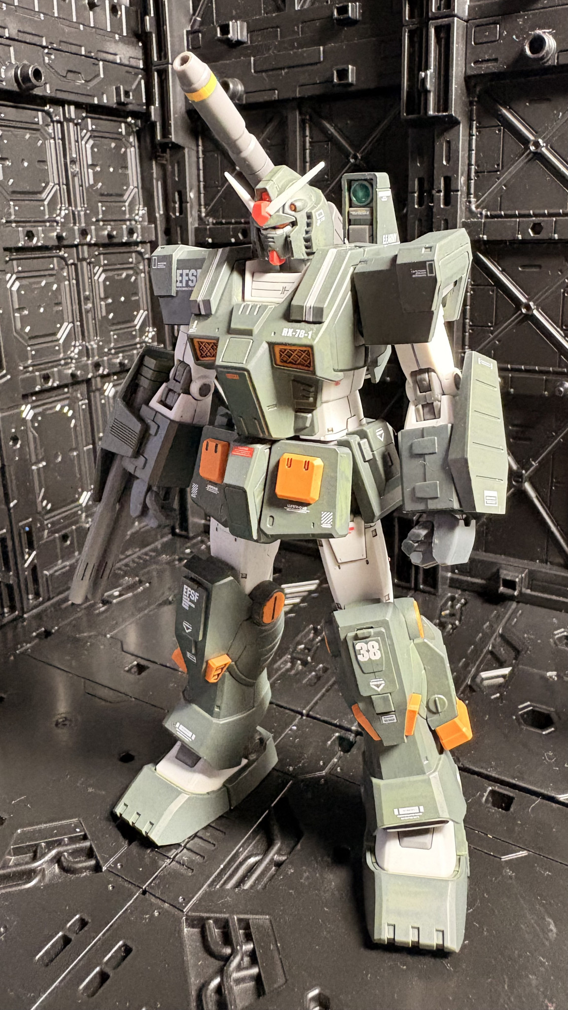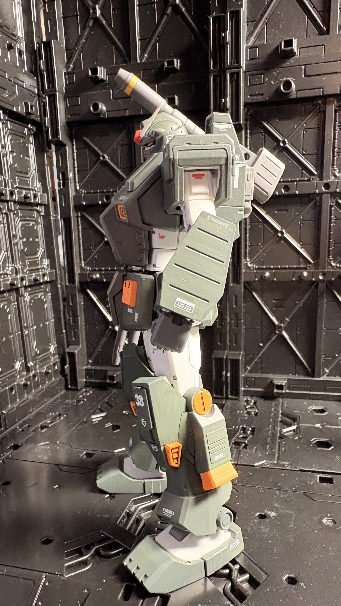 今回アーマーの緑はクレオスのRLM74グレーグリーンで塗装。フルアーマーのカラーを踏襲しながら落ち着きのあるグレーを強めに塗り替えてみました。因みに塗料は全てクレオスの水性ホビーカラーを使っています。筆塗り専門ですが…😅